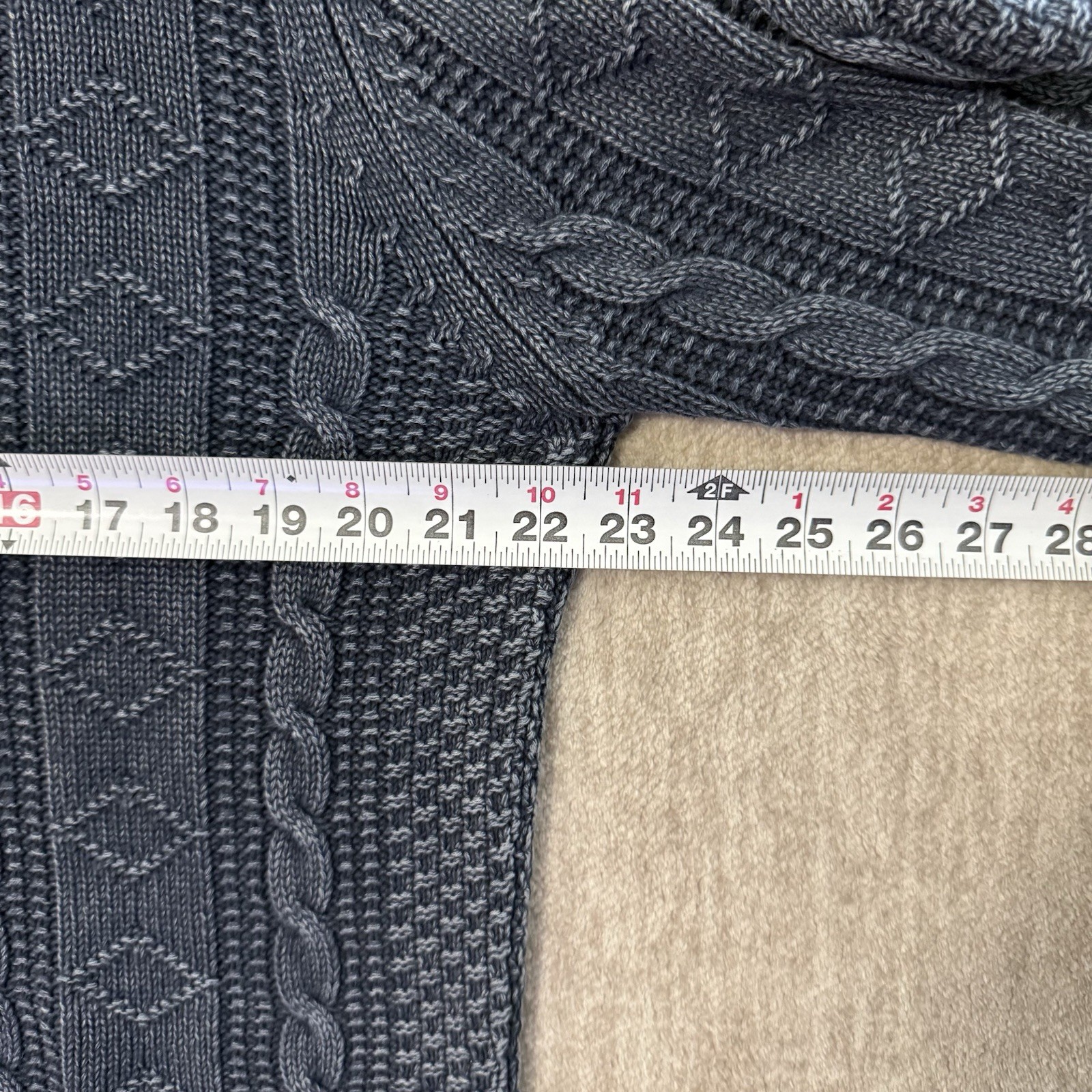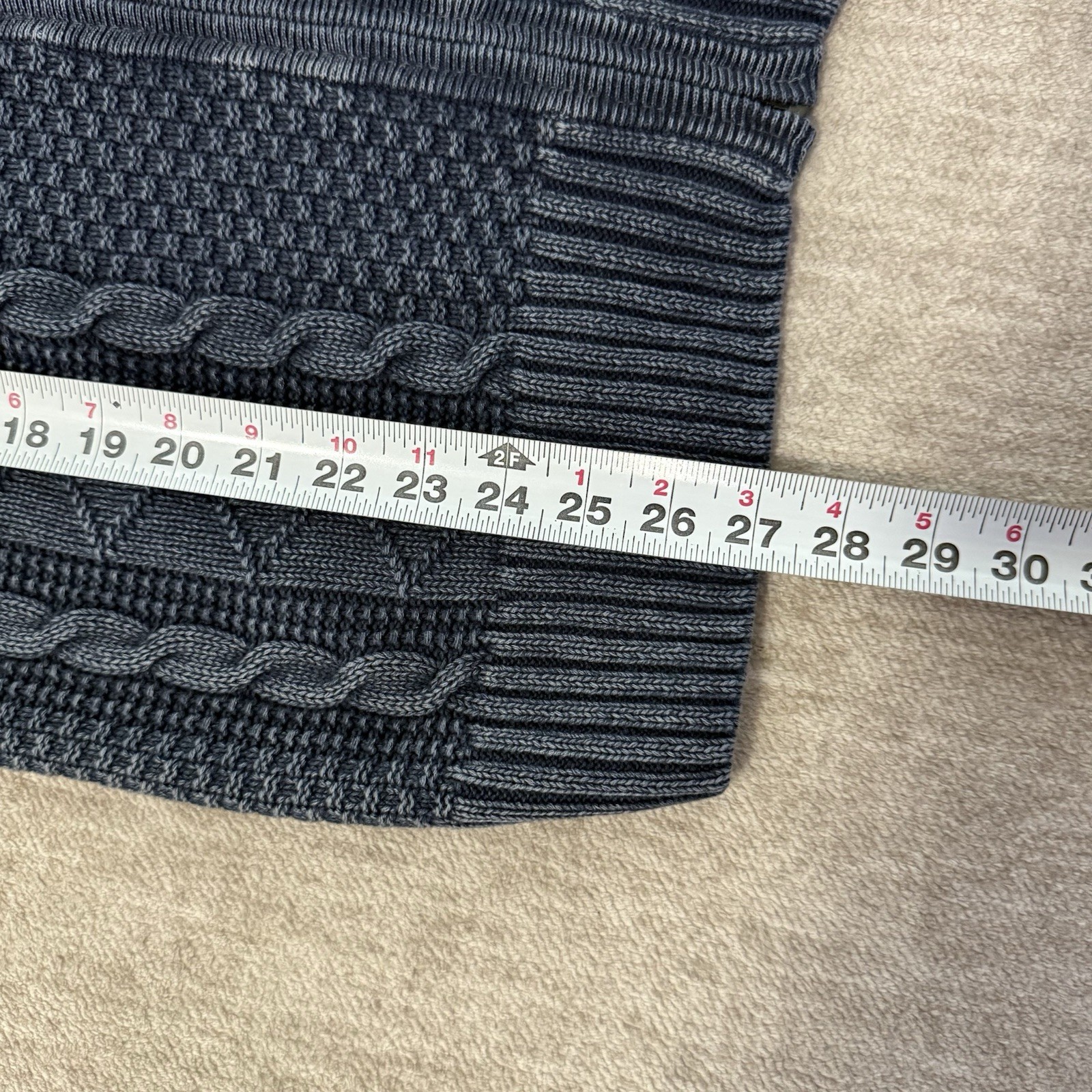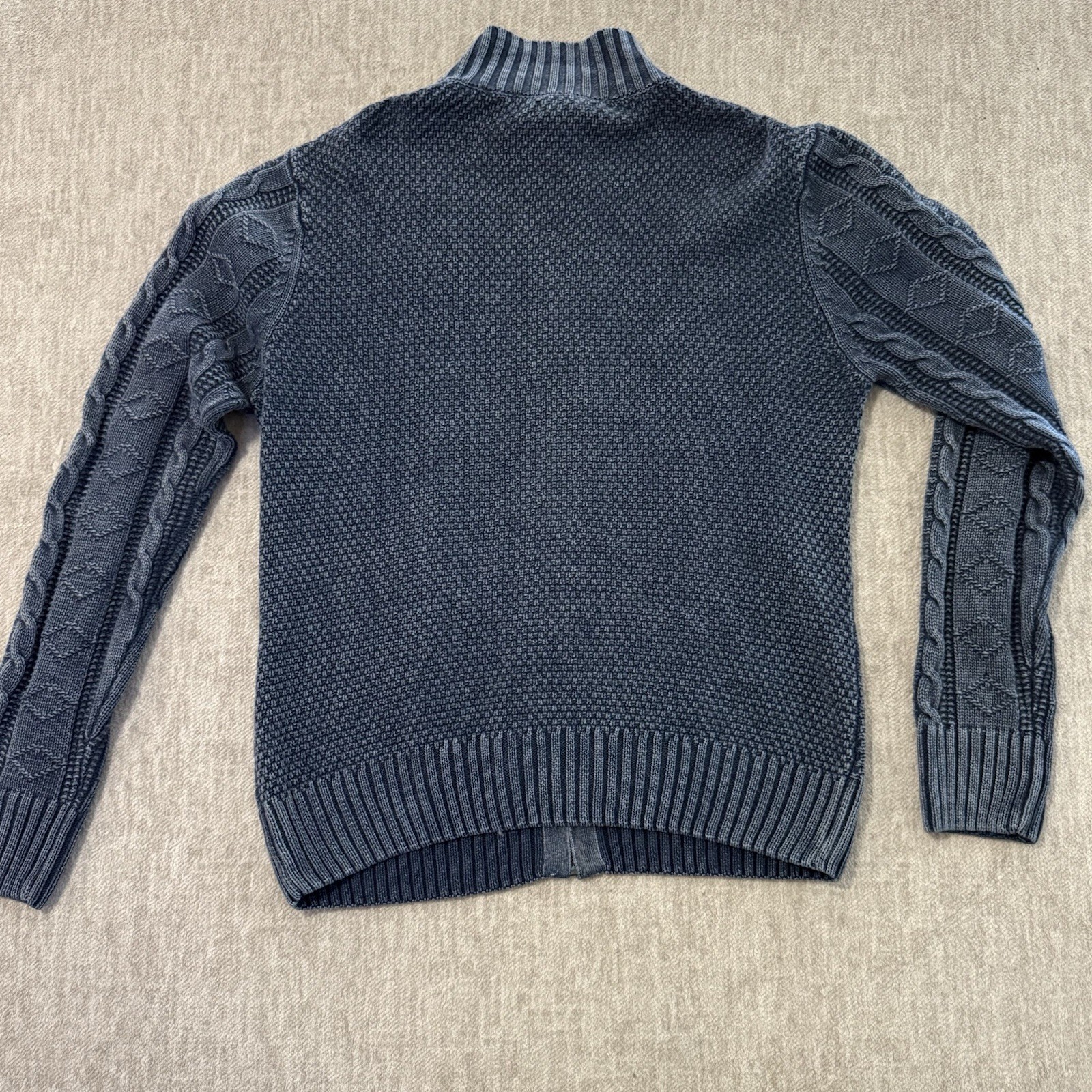 как выглядит Carbon 2 Cobalt Full Zip Sweater Men s Large Cable Knit Blue Linen Blend фото