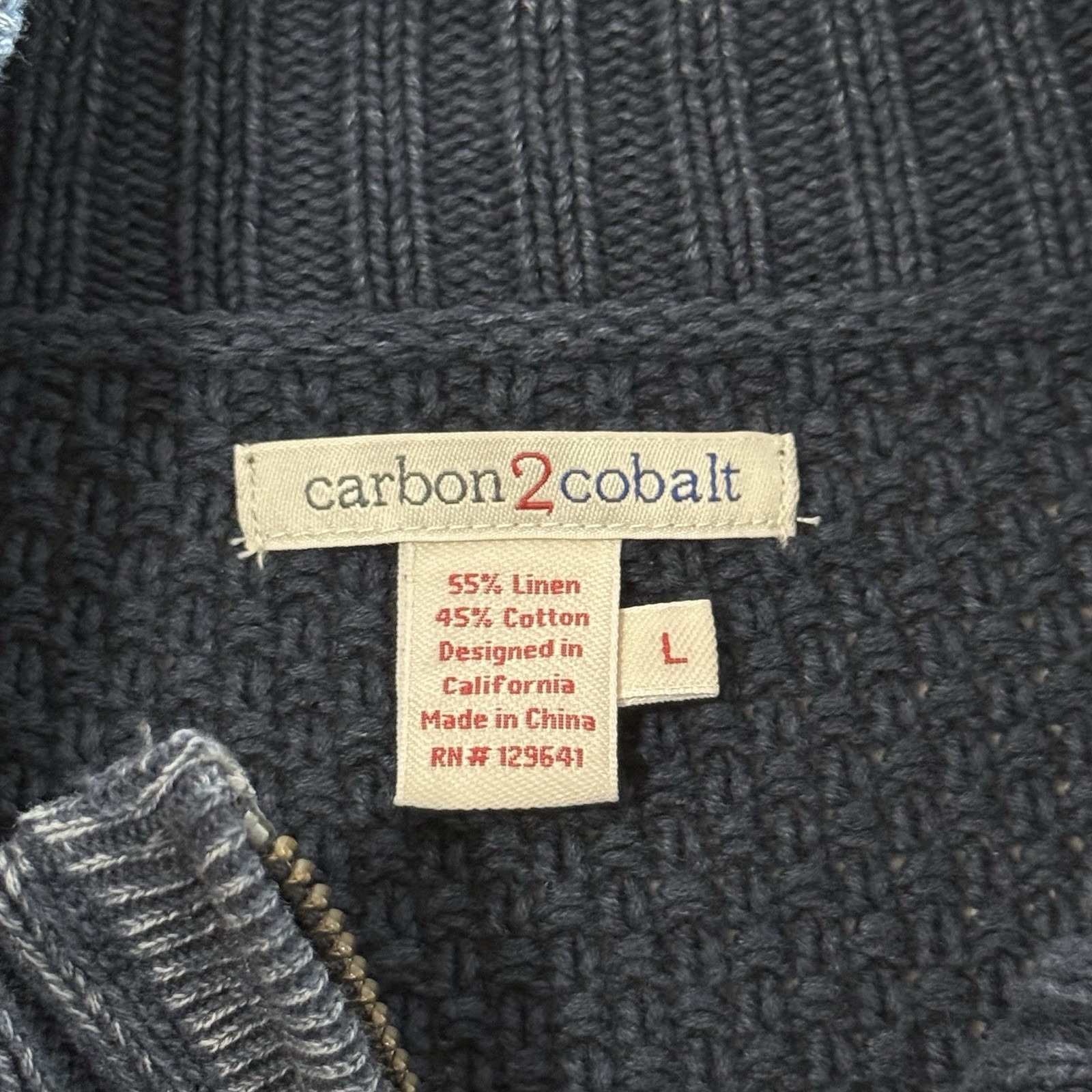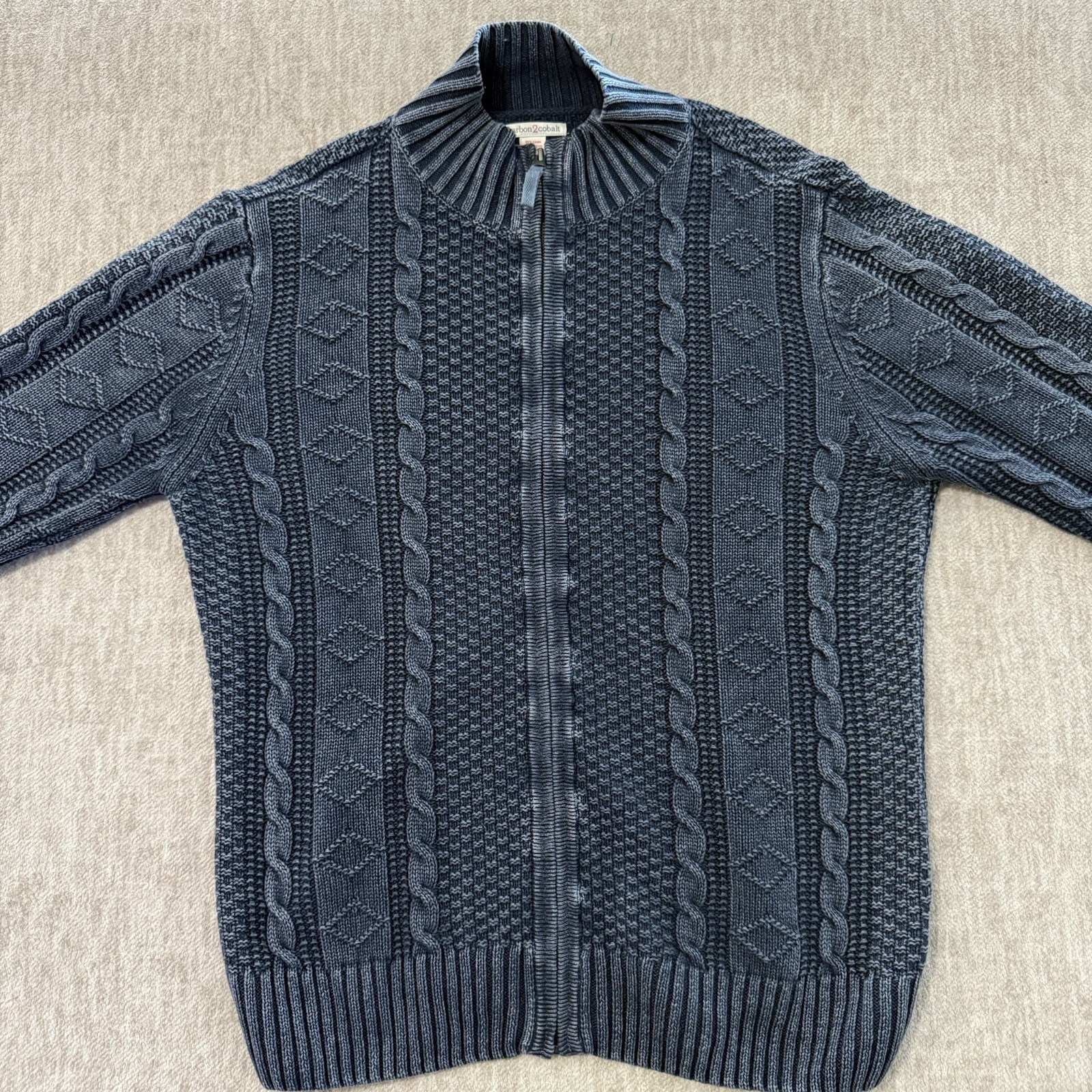 Carbon 2 Cobalt Full Zip Sweater Men s Large Cable Knit Blue Linen Blend
