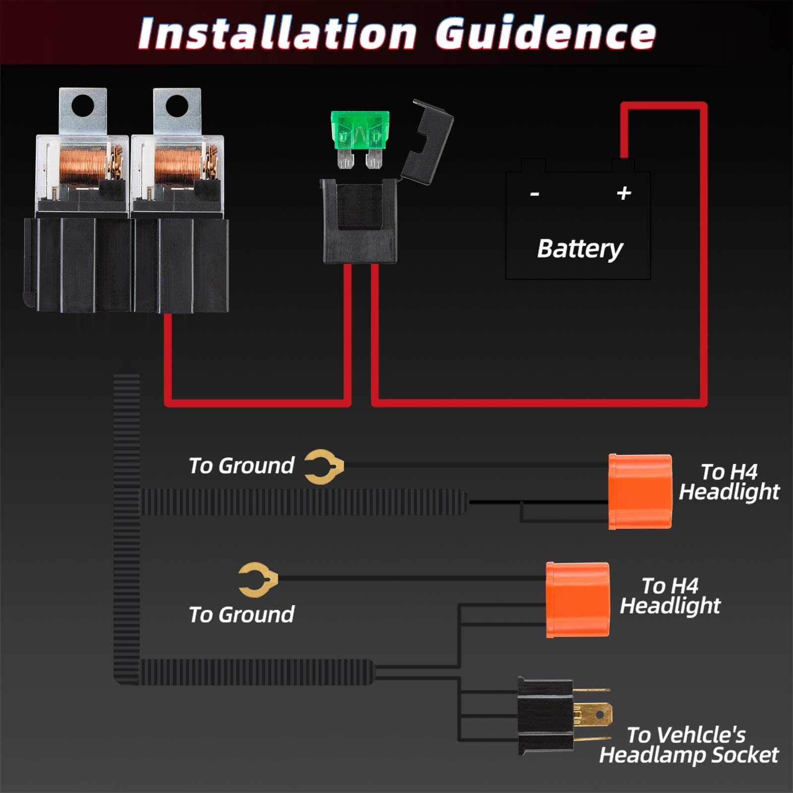 H4 Relay Harness 1set 2 Headlight H6054 6024 9003 5x7 7x6 Led Headlight Relay...