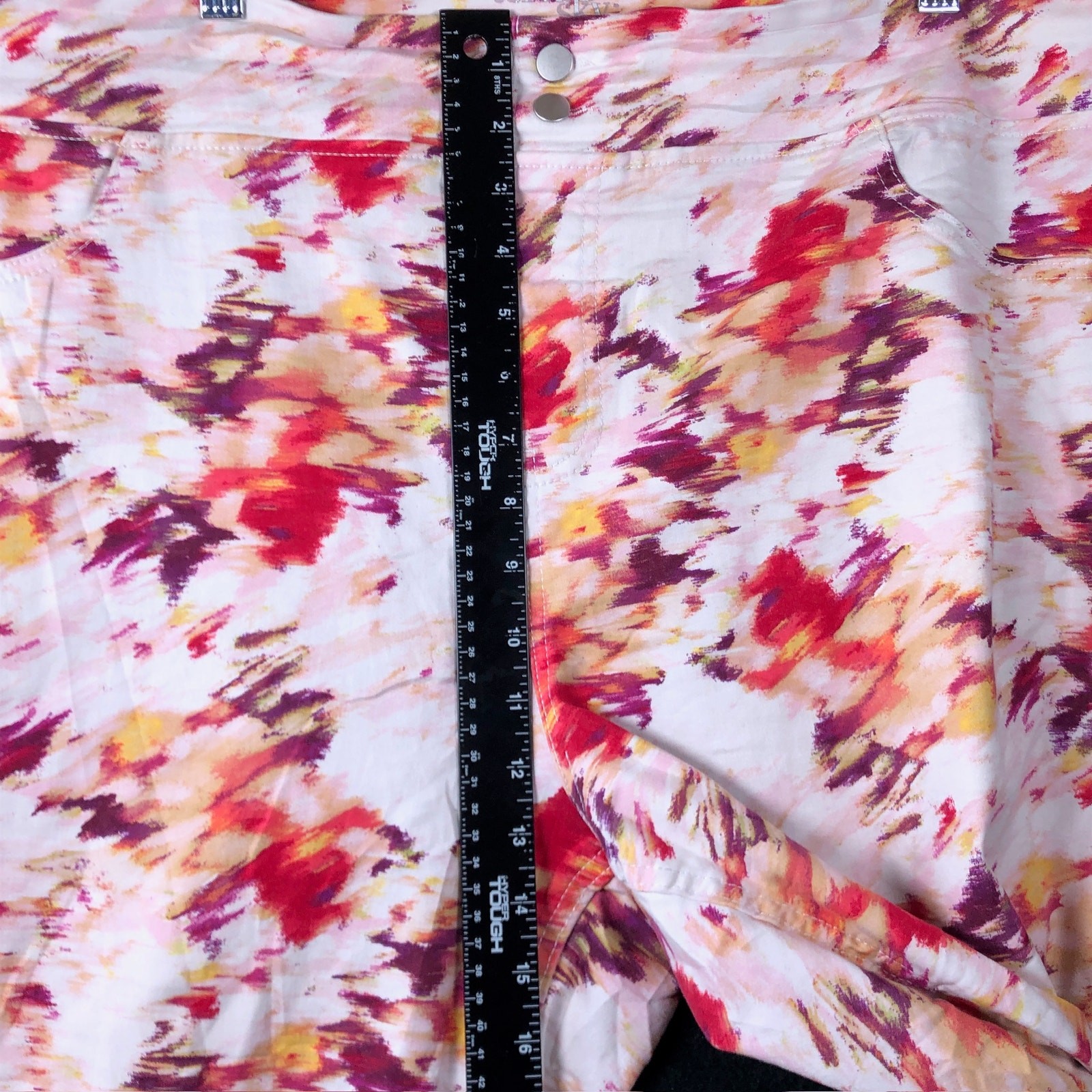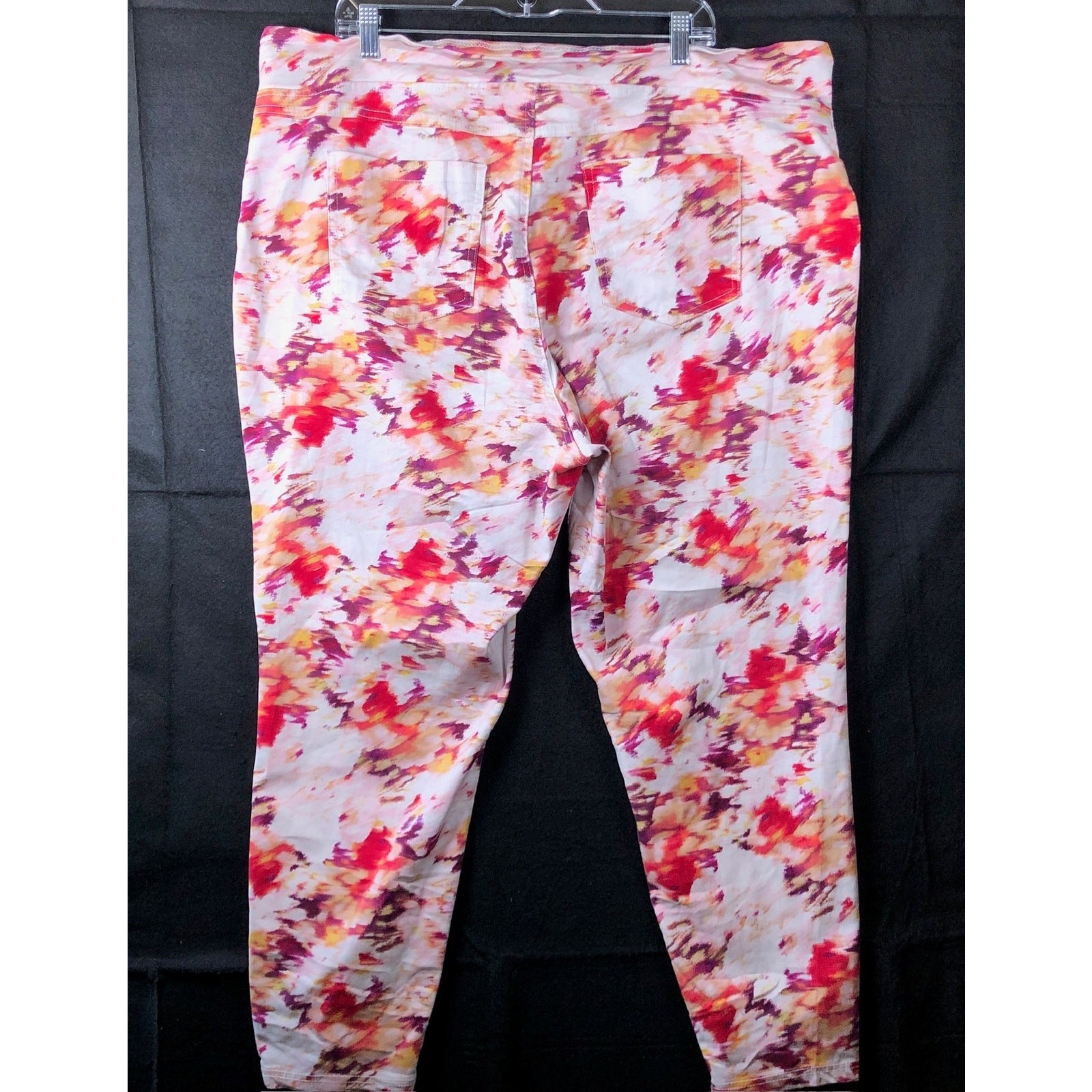 Terra Sky Womens Pants White Multi Pull On Elastic Waist Ankle Stretch 2X