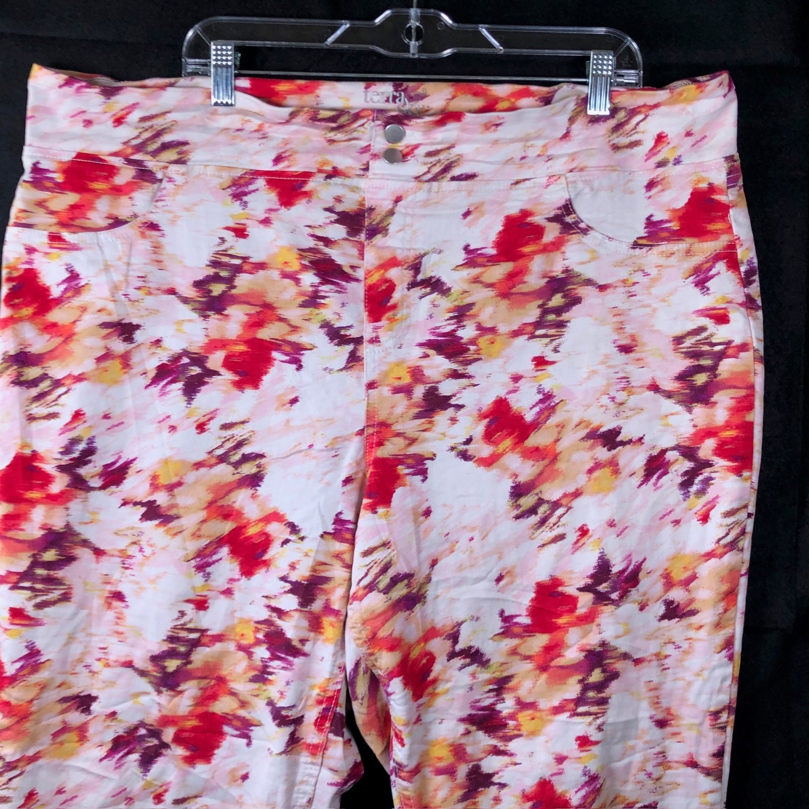 как выглядит Terra Sky Womens Pants White Multi Pull On Elastic Waist Ankle Stretch 2X фото