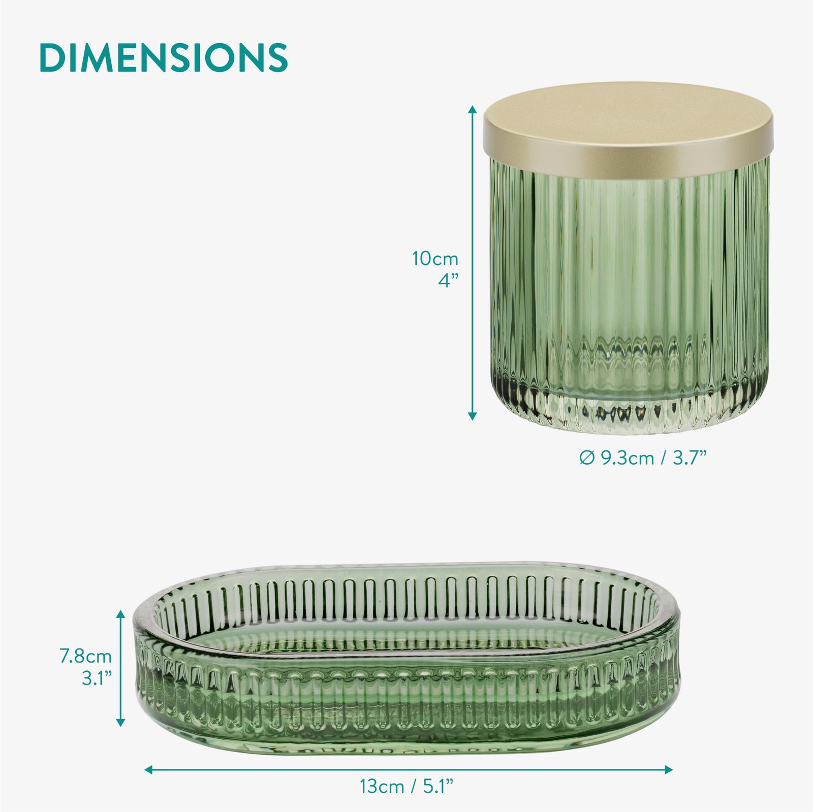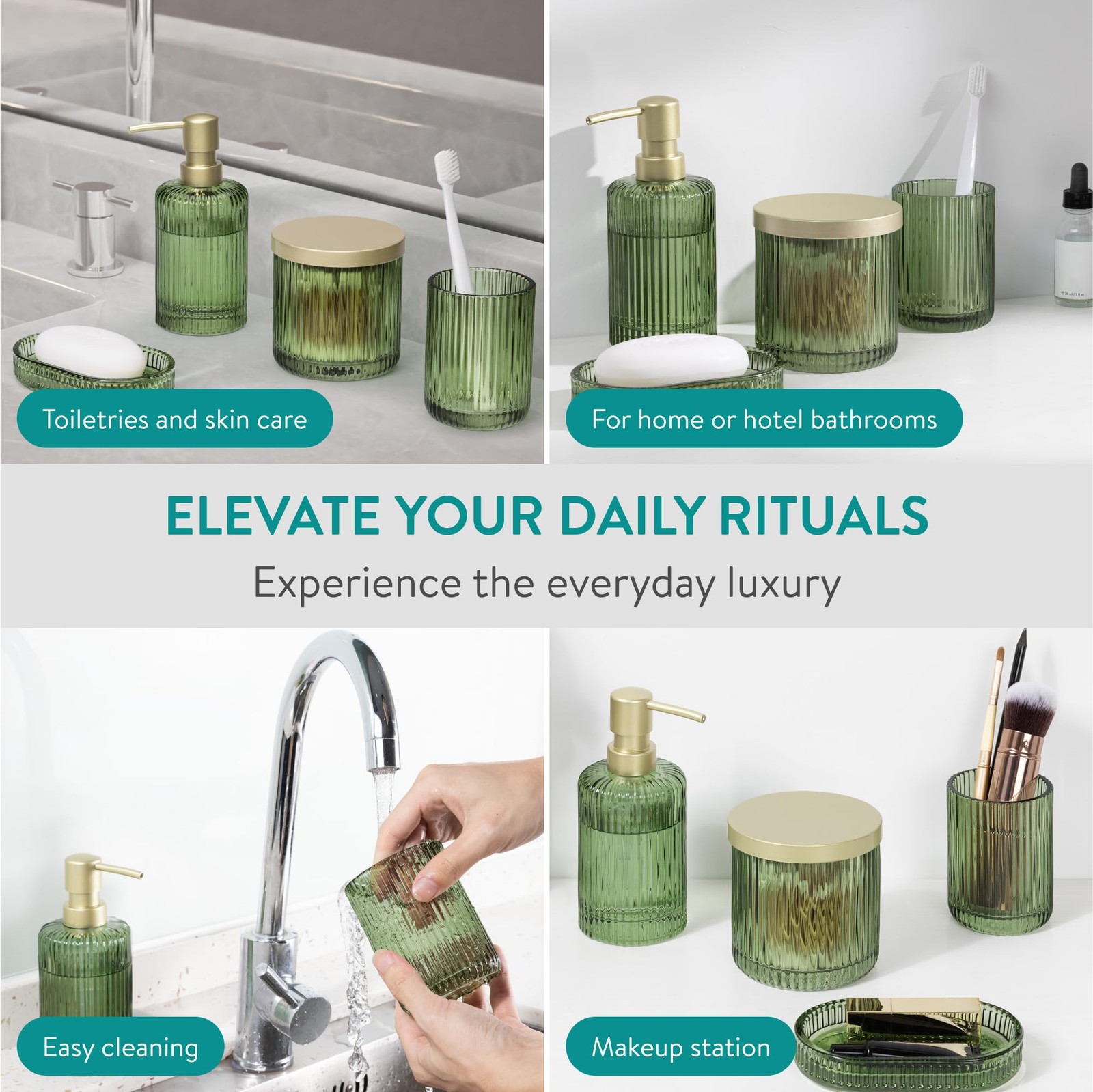 Glass Bathroom Set - Durable 4 Piece Accessory Set in Sage Green - Vanity Hom...