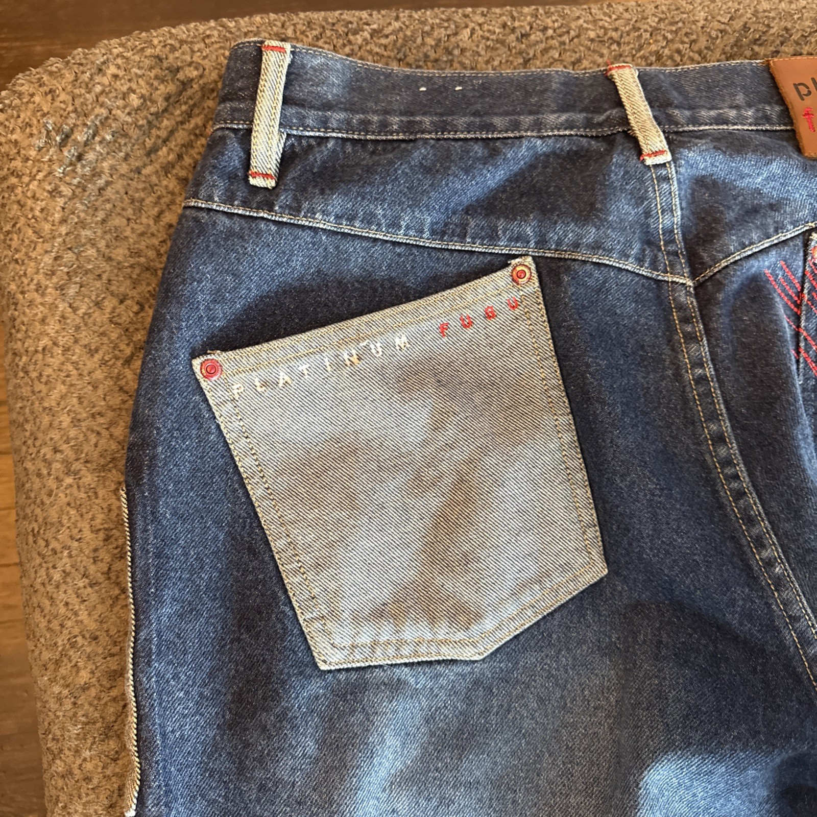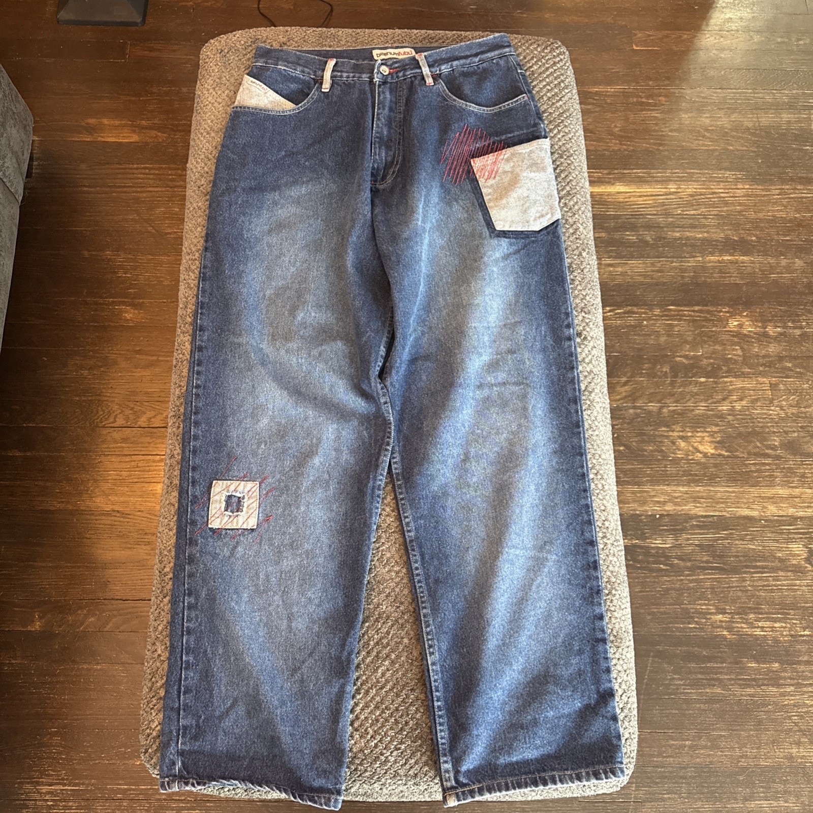 как выглядит Y2K Platinum Fubu Embroidered Patches Pockets Baggy Jeans Vintage Mens 34x34 фото