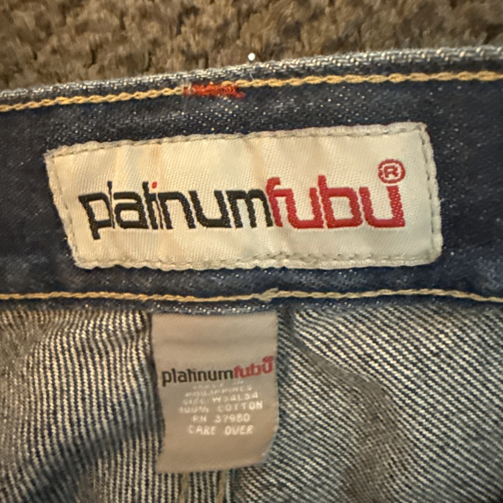 Y2K Platinum Fubu Embroidered Patches Pockets Baggy Jeans Vintage Mens 34x34