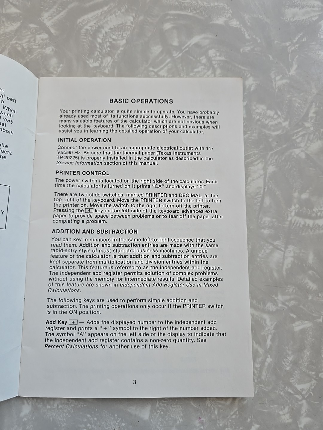 как выглядит OWNERS MANUAL Texas Instruments Printing Calculator TI-5135 Operating Guide фото