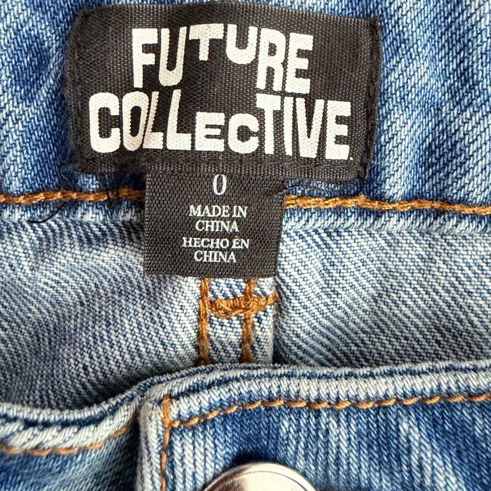 как выглядит Future Collective Studded Barrel Leg Jeans NWOT Size 0 High Rise Denim фото