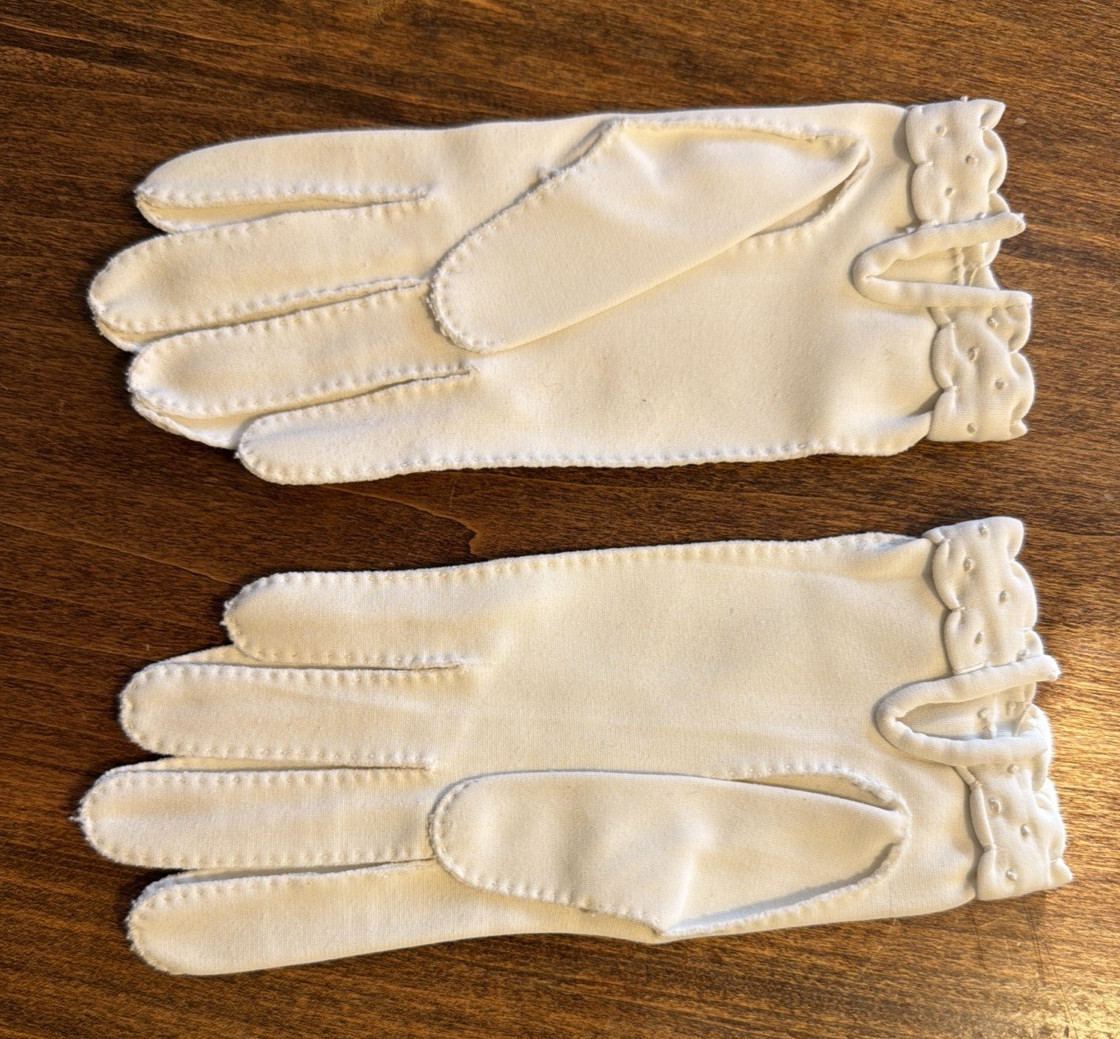 Vintage White Wrist-Length Formal Gloves With Scalloped Trim