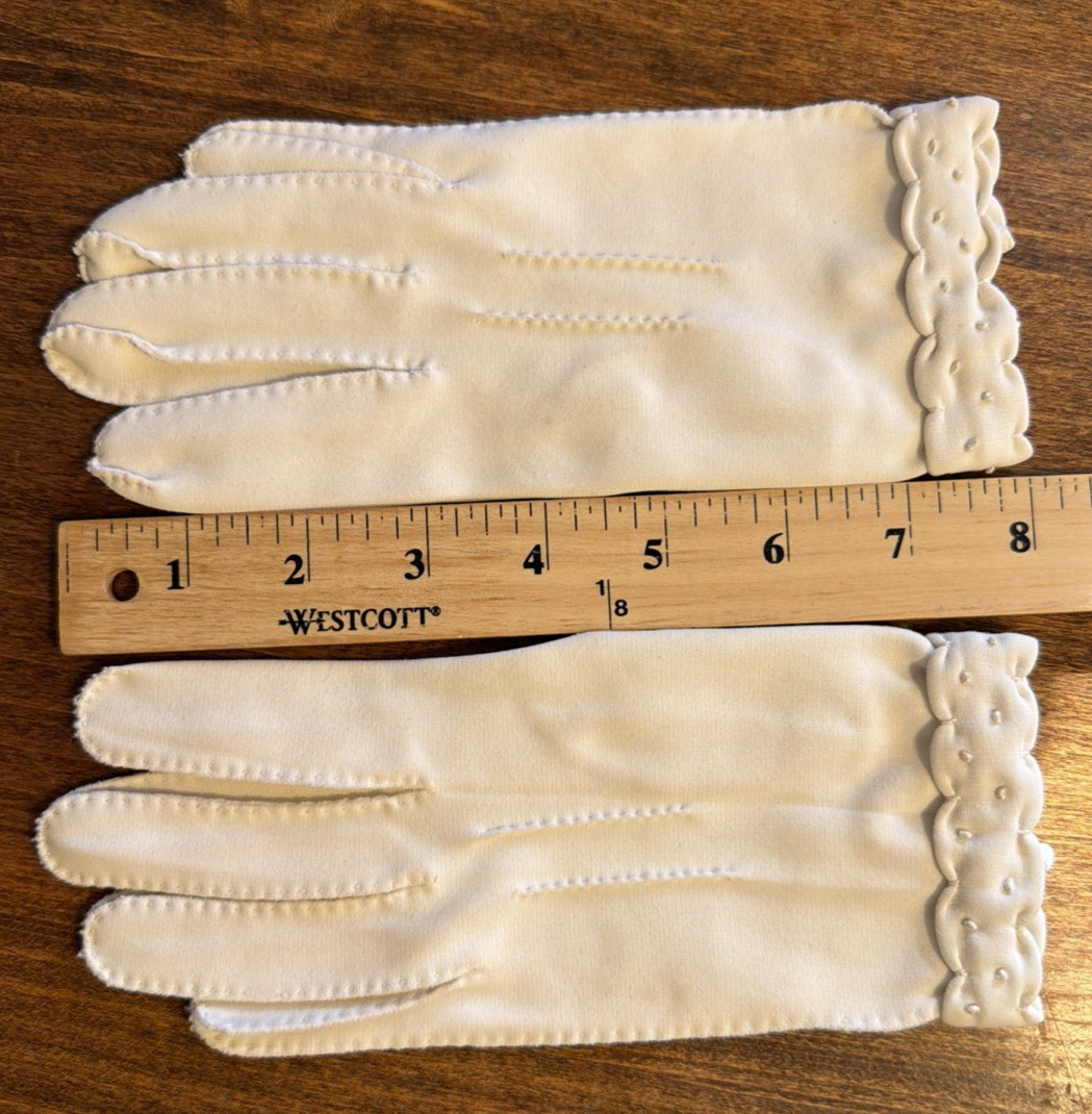 как выглядит Vintage White Wrist-Length Formal Gloves With Scalloped Trim фото
