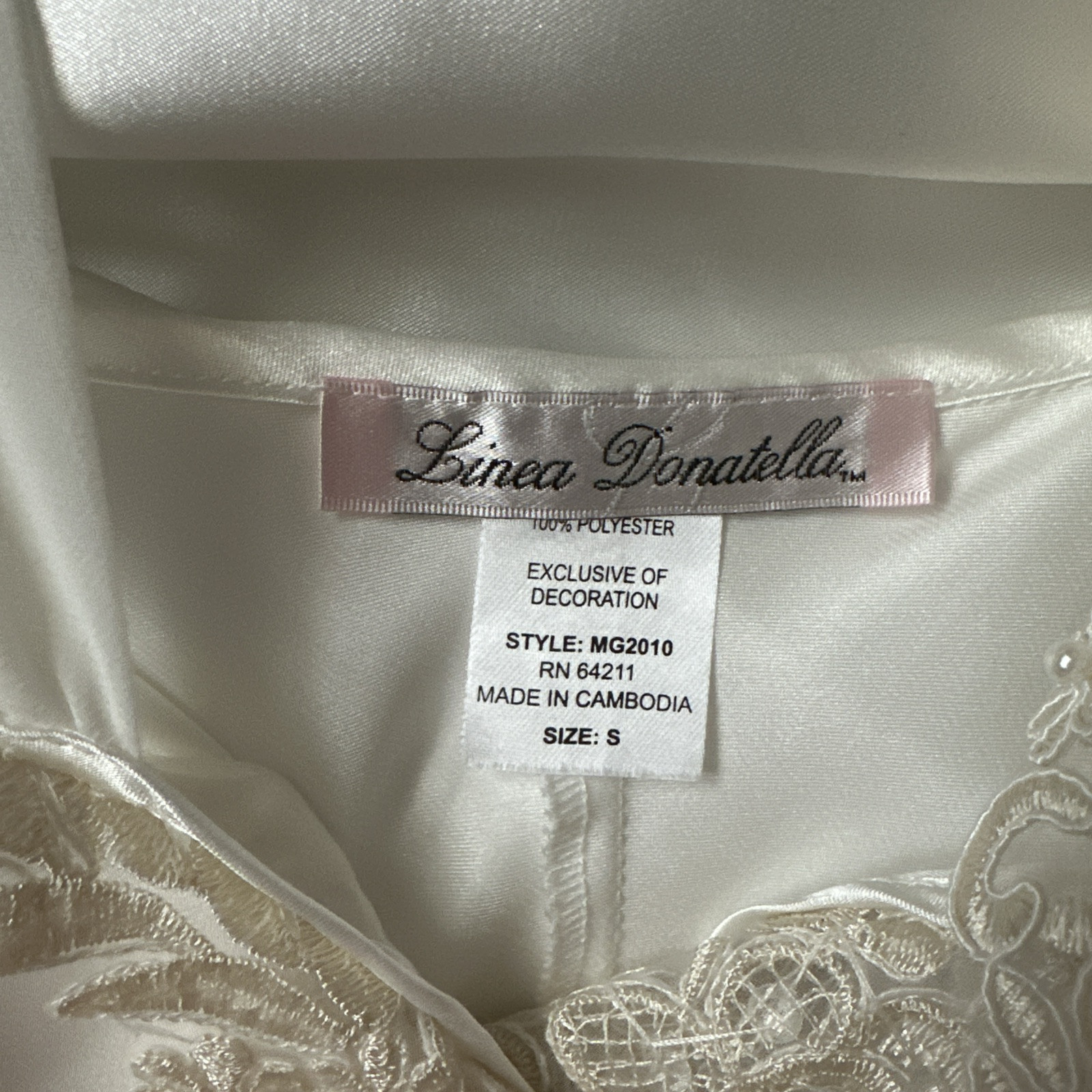 как выглядит Linea Donatella White Bridal Satin Nightgown Wth Lace, Pearls, Appliqu Sz Small фото