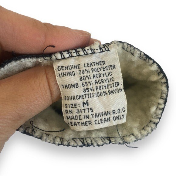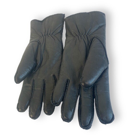 как выглядит Vintage Black Leather Gloves Warm Lined Winter Dress Size Medium Unisex 0184 фото