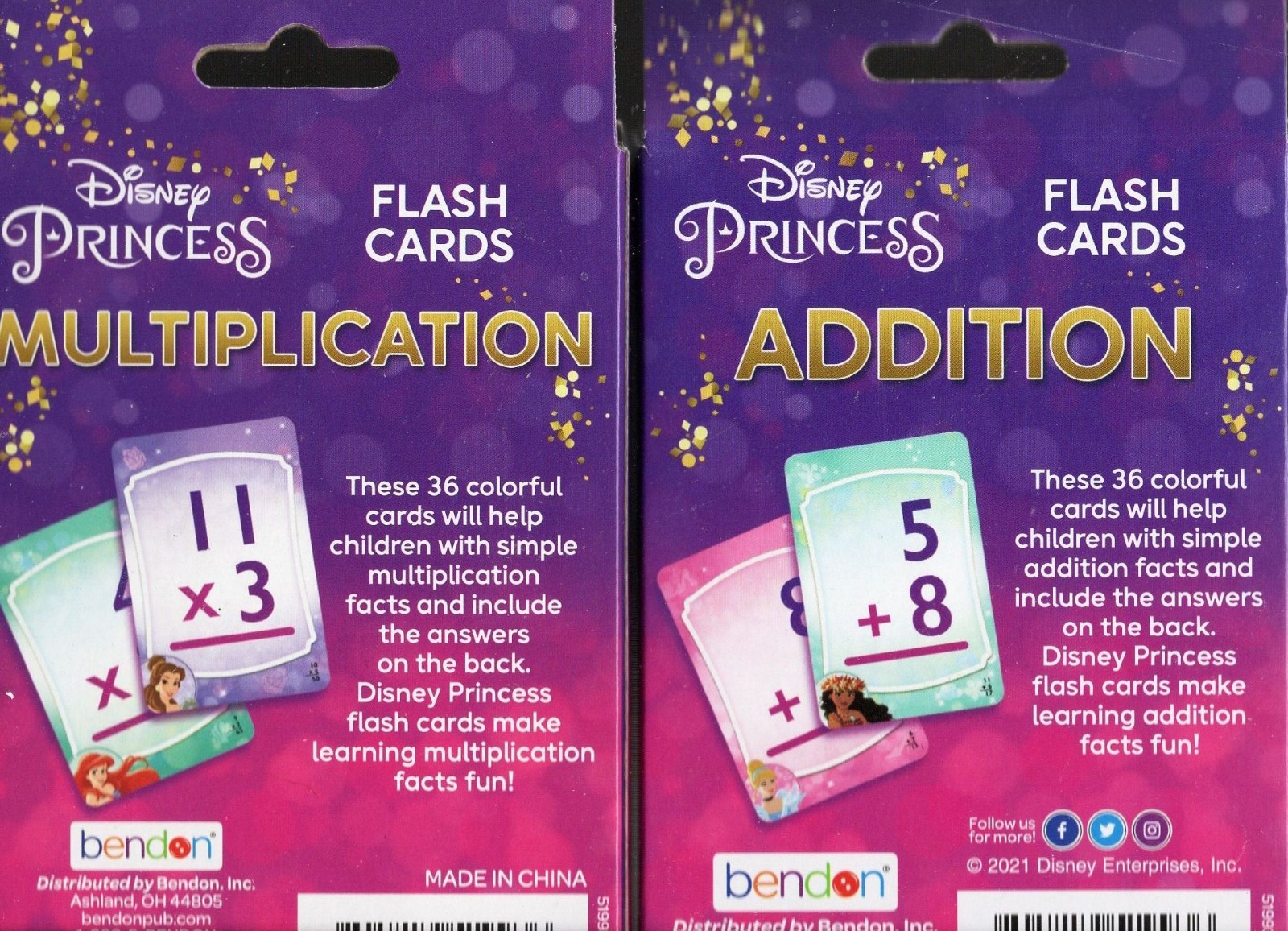 Disney Princess - Multiplication, Addition - Flash Cards Set of 2