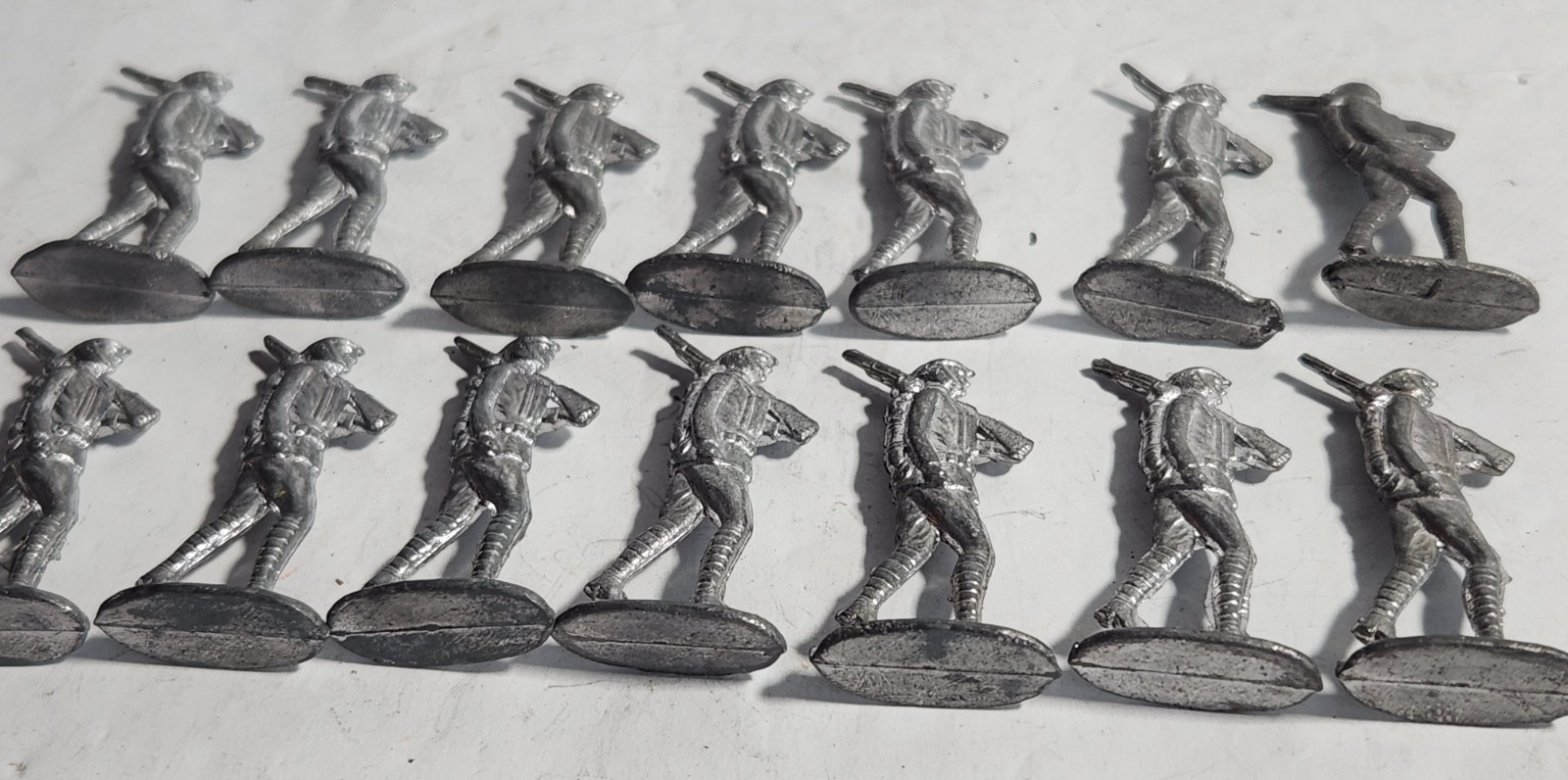 как выглядит LEAD SEMI-FLAT SOLDIERS VINTAGE COLLECTION OF 14 US INFANTRY WWI 40mm UNPAINTED фото