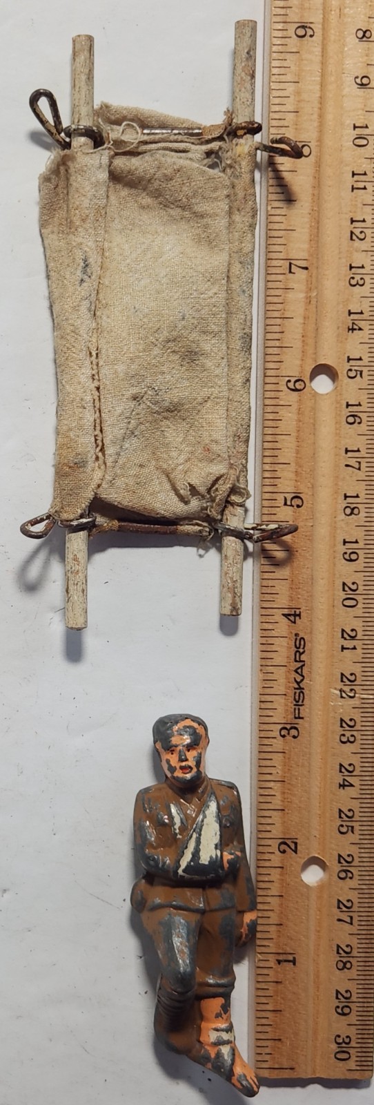 BARCLAY MANOIL VINTAGE 1950s WOUNDED SOLDIER WITH COT STRETCHER GREY IRON 75mm