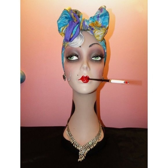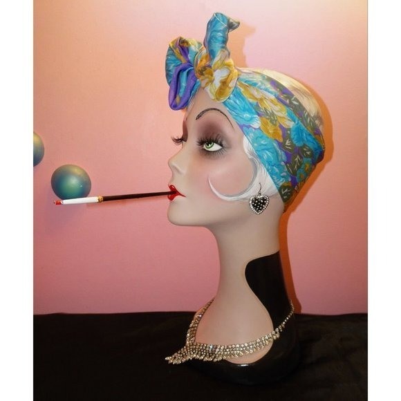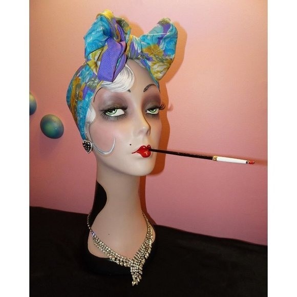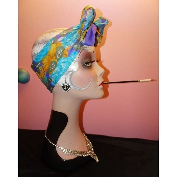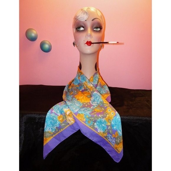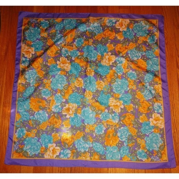 как выглядит Vintage Blue Purple Extra Large Floral Scarf pinup retro boho rockabilly фото
