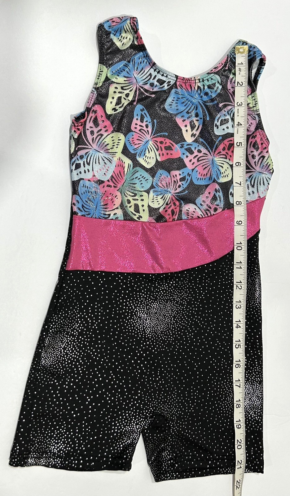 как выглядит Lot Of 2 Toddler Girl Gymnastic Leotards Sz 5 Shimmery Rainbow Butterfly Print фото