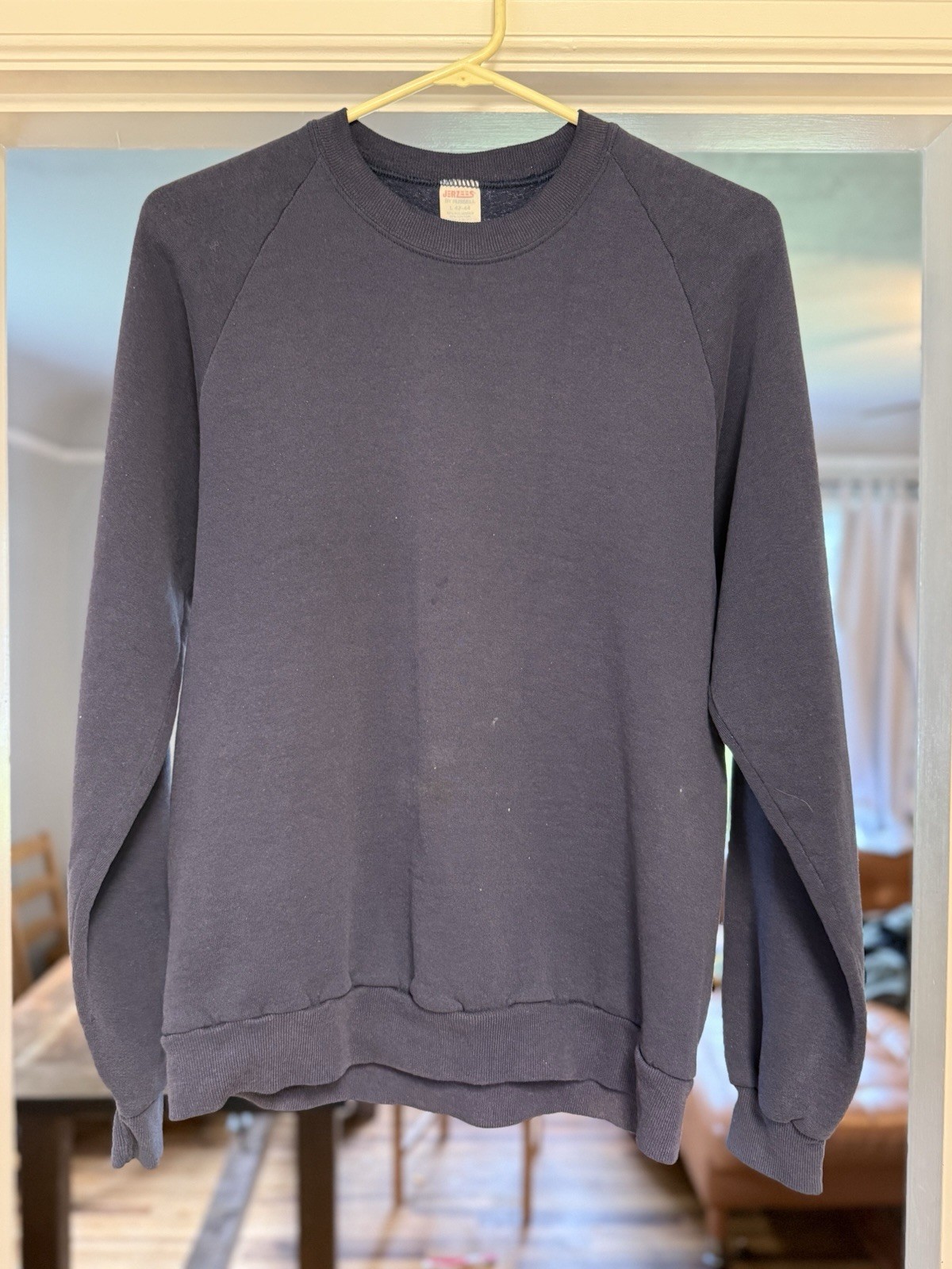 как выглядит Vintage 70s 80s crewneck sweatshirt navy blue blank raglan pullover USA L фото