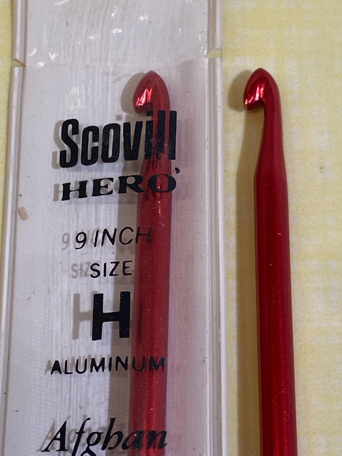 2 Vintage Hero Scovill Crochet 9 Afghan Needle Hook USA Size H Red 7061