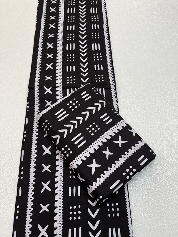 Sell by 3 Yard African Super Quality Wax Prints Mudcloth Design-Black and White