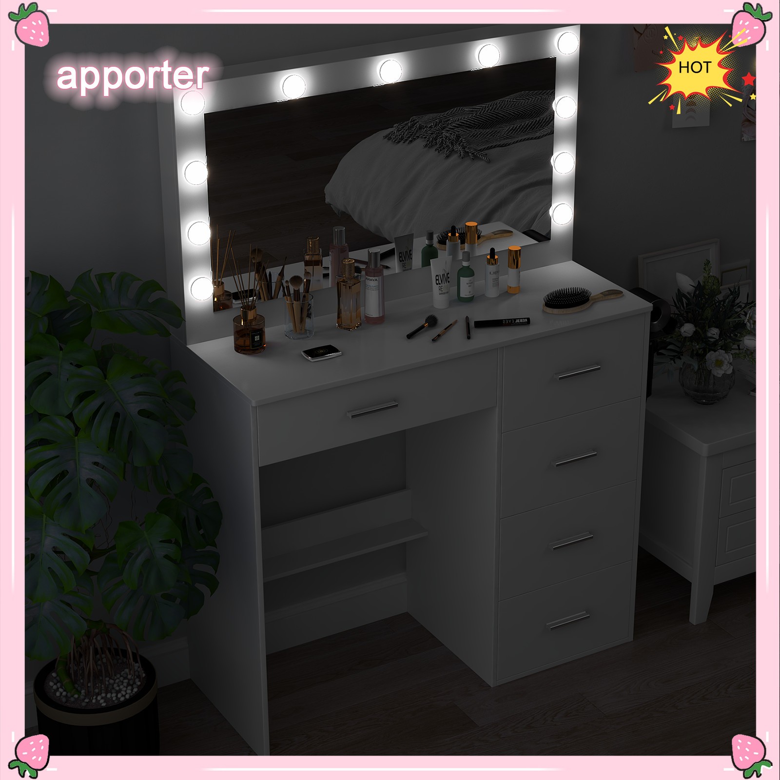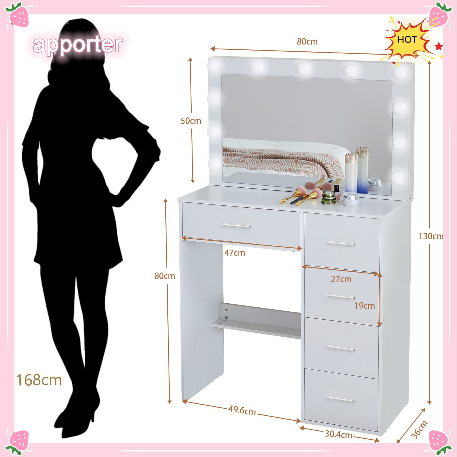 11 Lights Makeup Desk Mirror Dressing Dresser Table White Vanity Set US