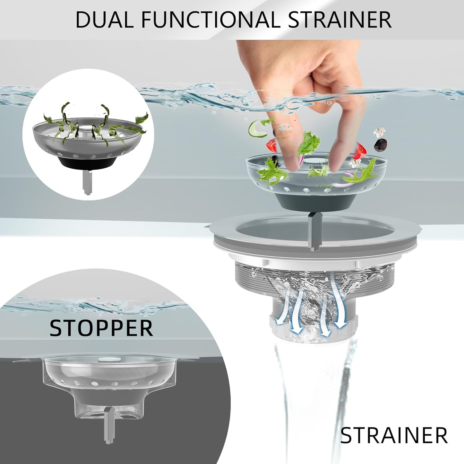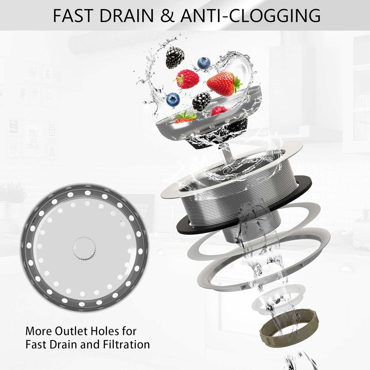 3-1/2 Inch Kitchen Sink Drain Strainer Assembly Kit Brushed Stainless Steel