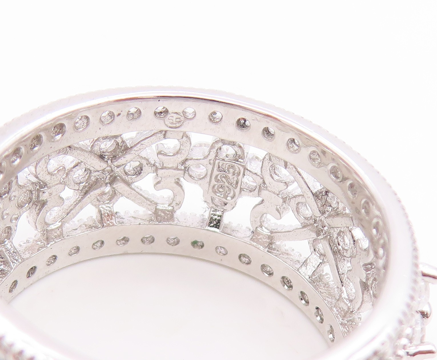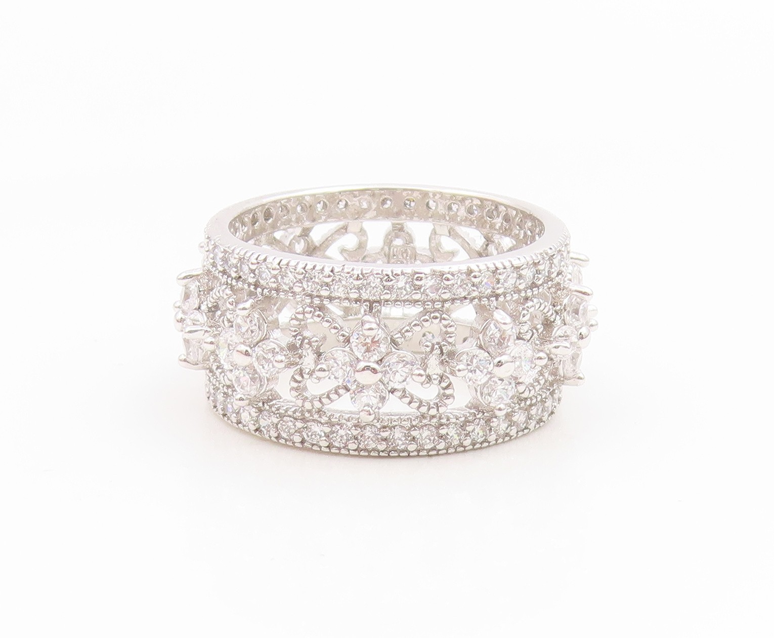 925 Sterling Silver Vintage Ring CZ Floral Openwork Eternity Band Sz 8 RG35194