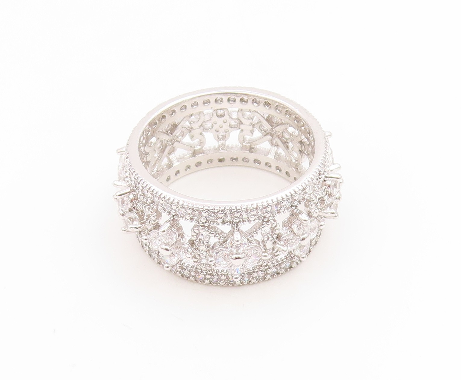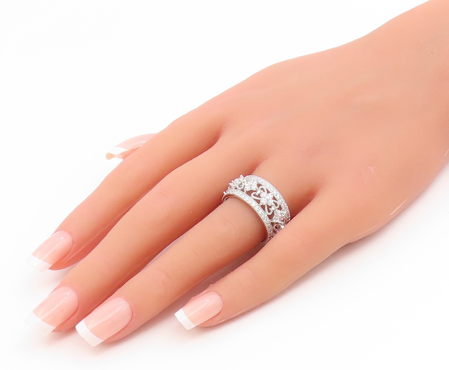 как выглядит 925 Sterling Silver Vintage Ring CZ Floral Openwork Eternity Band Sz 8 RG35194 фото