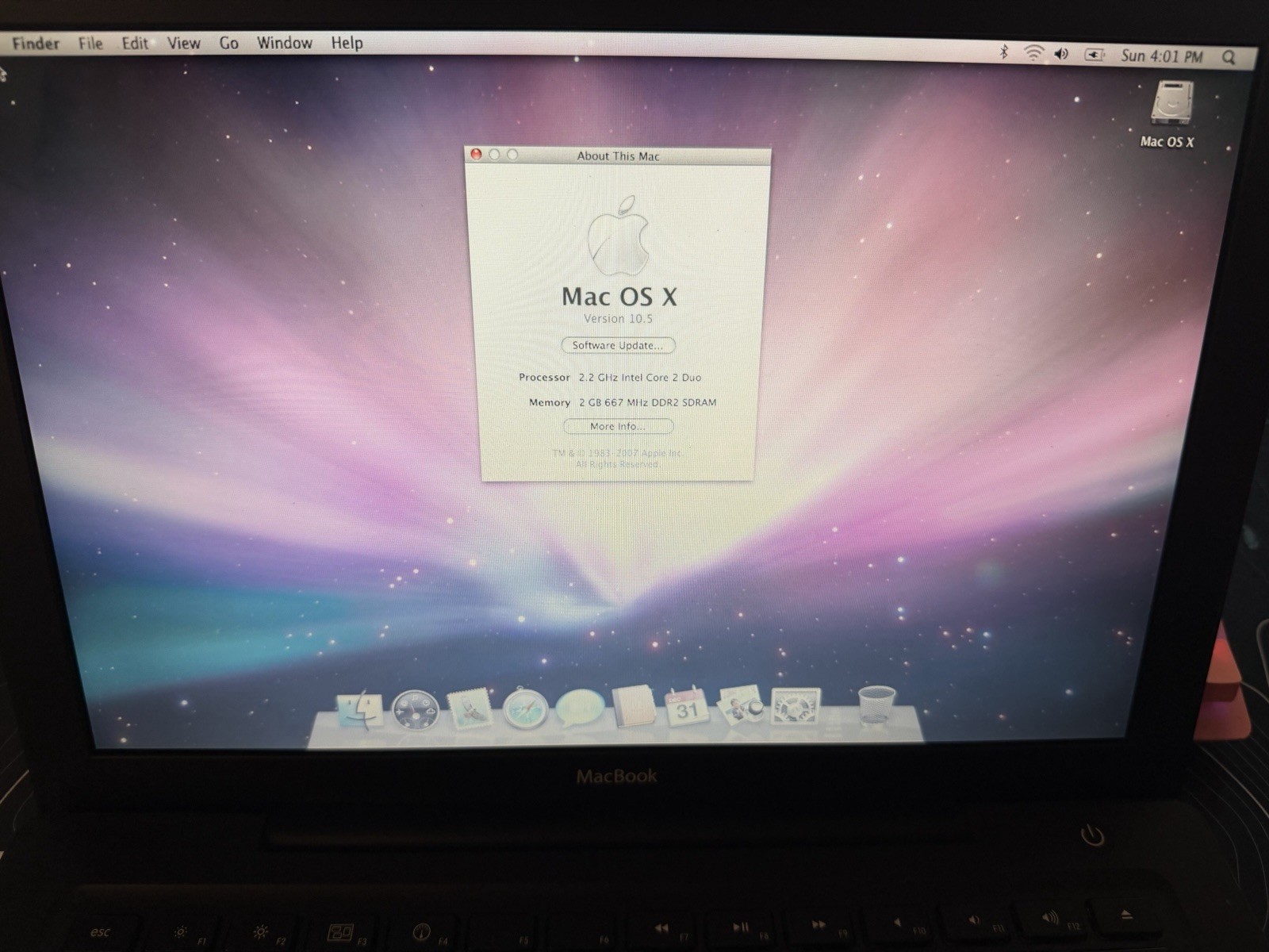 Apple MacBook BLACK 13-inch January 2008 2.2GHz Intel Core 2 Duo MB063LL/B