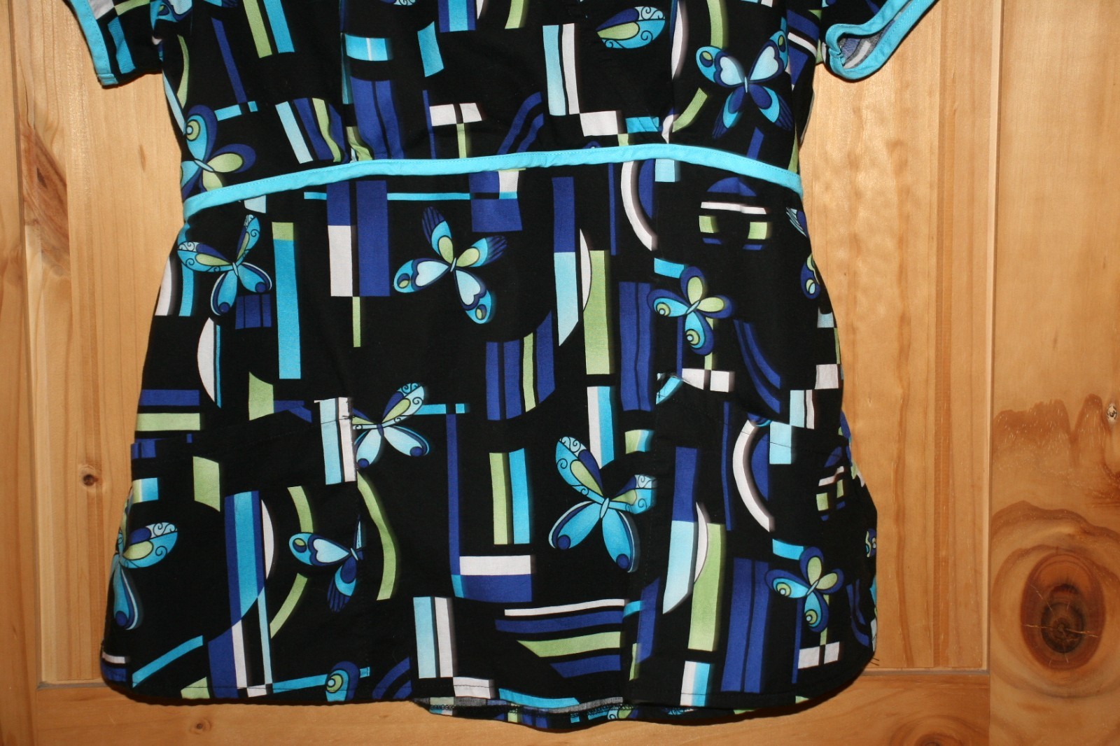 SB SCRUBS Brand Scrub Top Pockets Size: Medium Black blue butterflies PRETTY