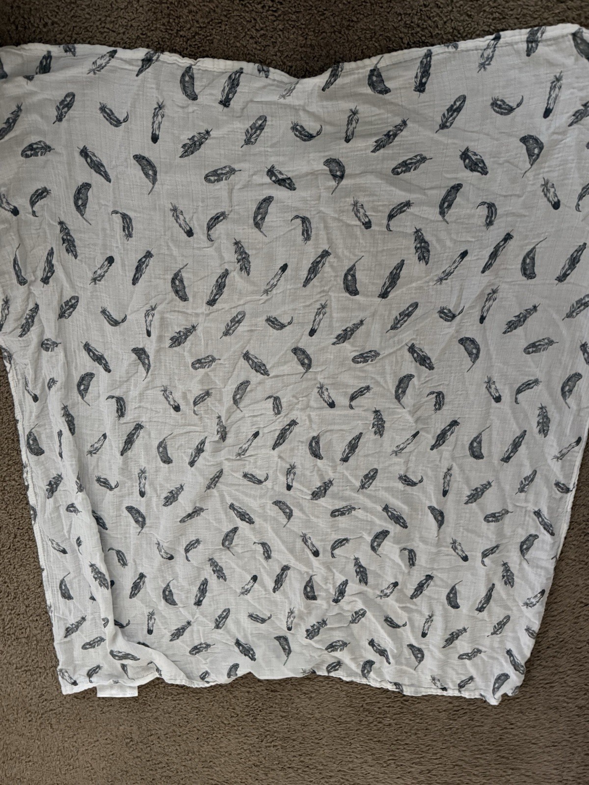 как выглядит Feathered Swaddle Baby Blanket White Gray фото