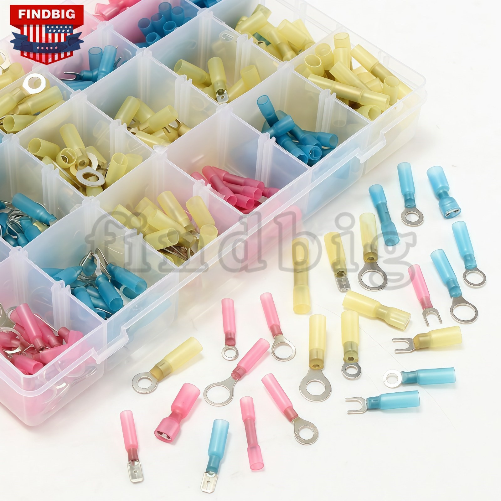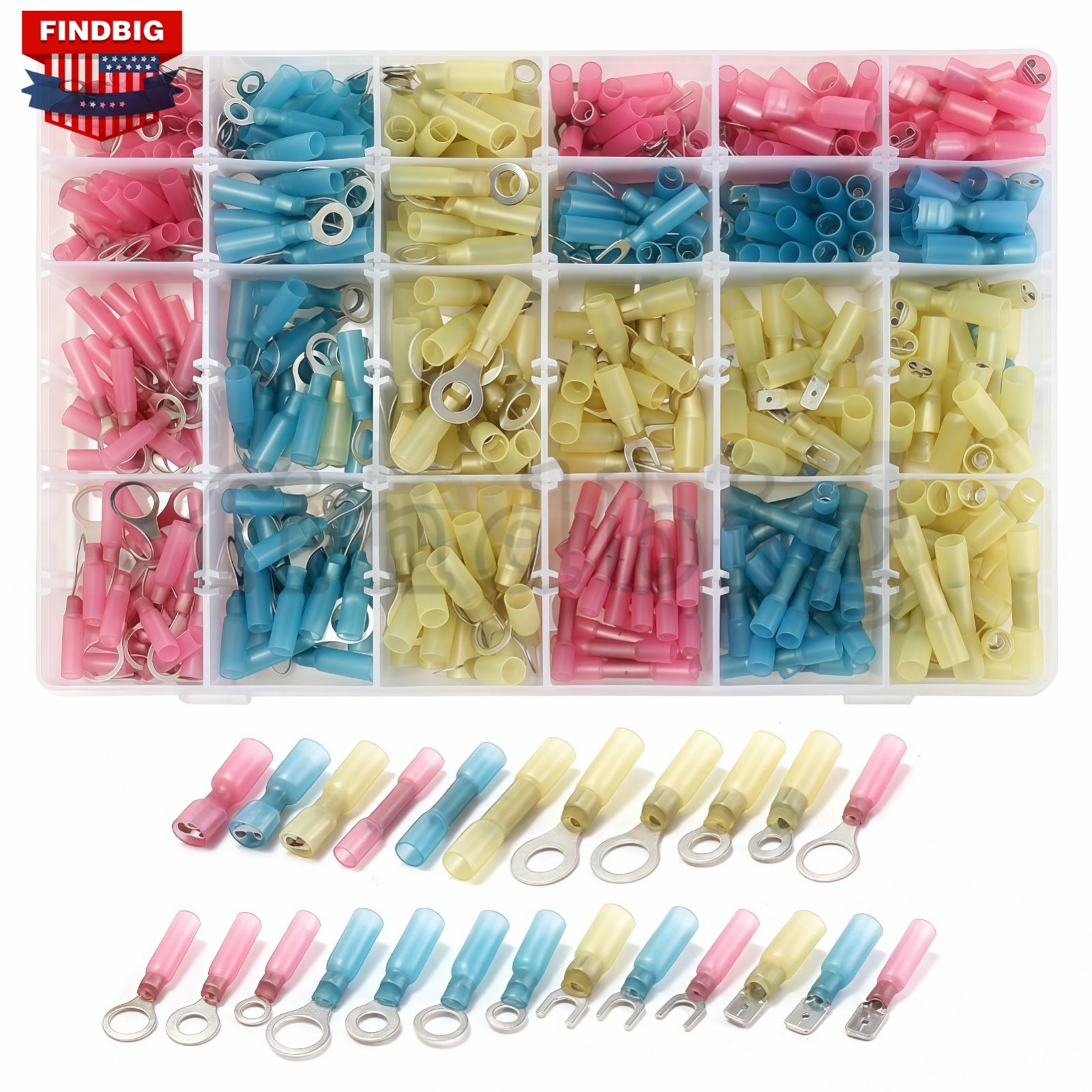480PCS Heat Shrink Wire Connectors Assortment Crimp Terminals Marine Case Kit