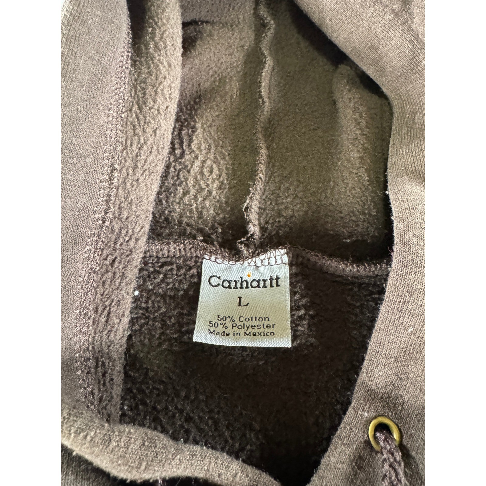 Y2K Carhartt Spellout Hoodie Sweatshirt Brown White Men's Large Workwear Clean