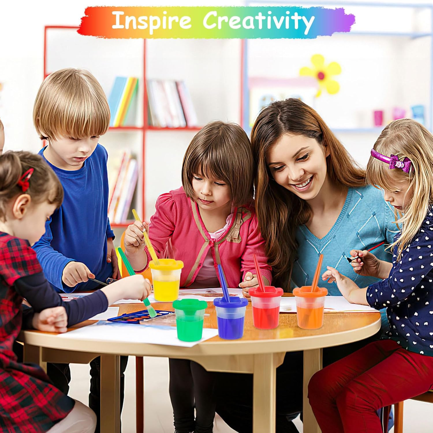 Mkobon 10 PCS No Spill Paint Cups with Colored Lids and Brushes for Kids, Spill