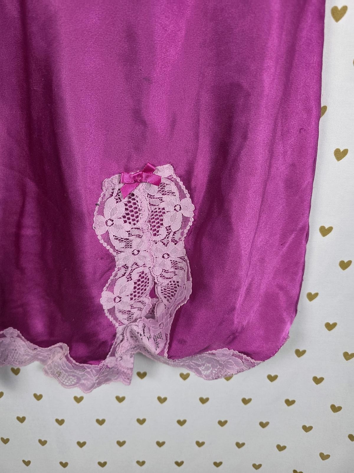 Victorias Secret Silky Purple Satin Lace Lined Chemise Slip Lingerie LARGE