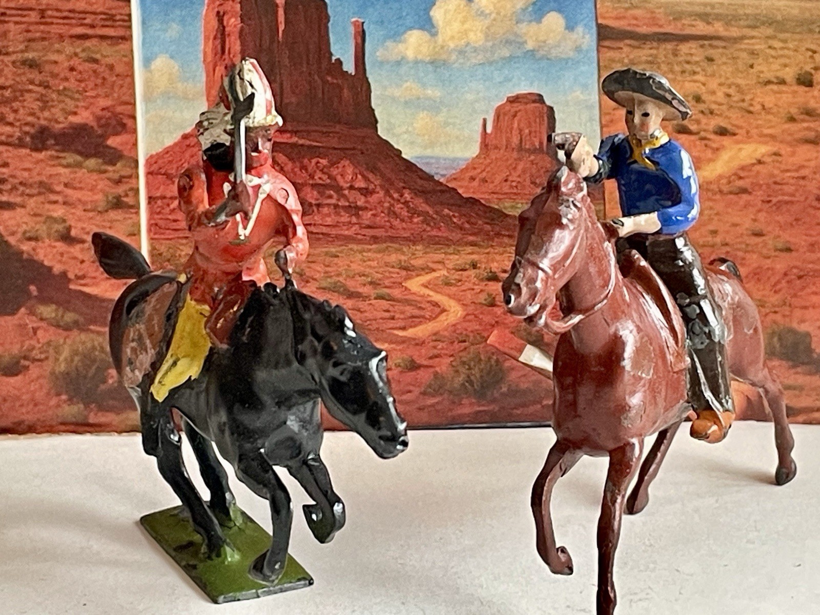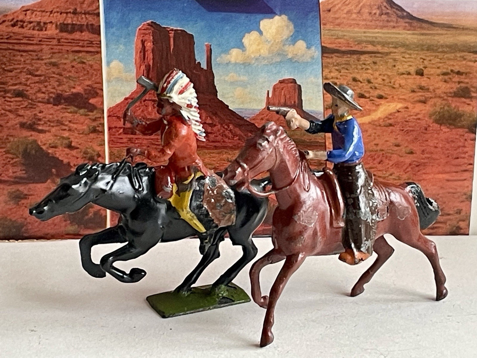 Britains Lead Toy Soldier Cowboy and Indian on Horseback