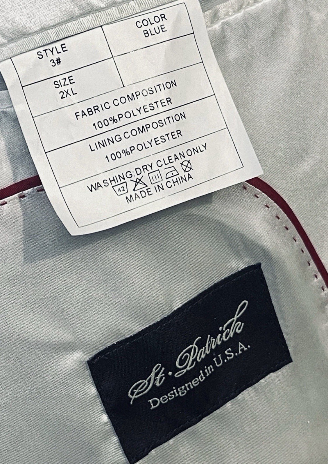 Mens St. Patrick Sz2XL Blue White Floral Tuxedo Jacket Formalwear STUNNING