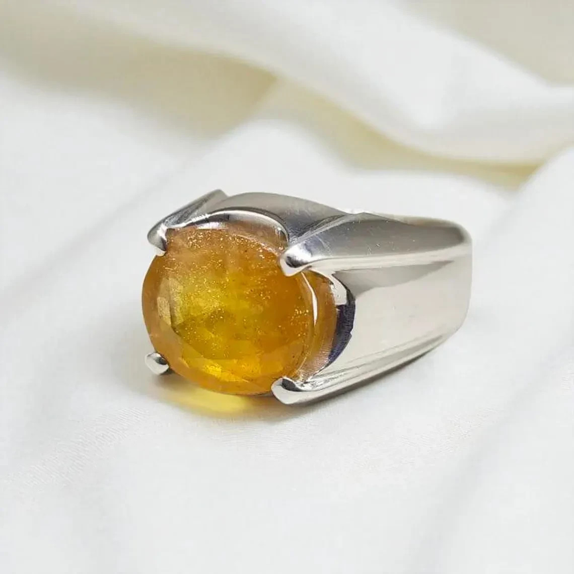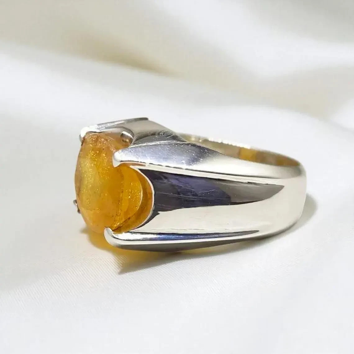 как выглядит Natural Yellow Sapphire Sterling Silver 925 Handmade Ring, Real Sapphire Ring фото
