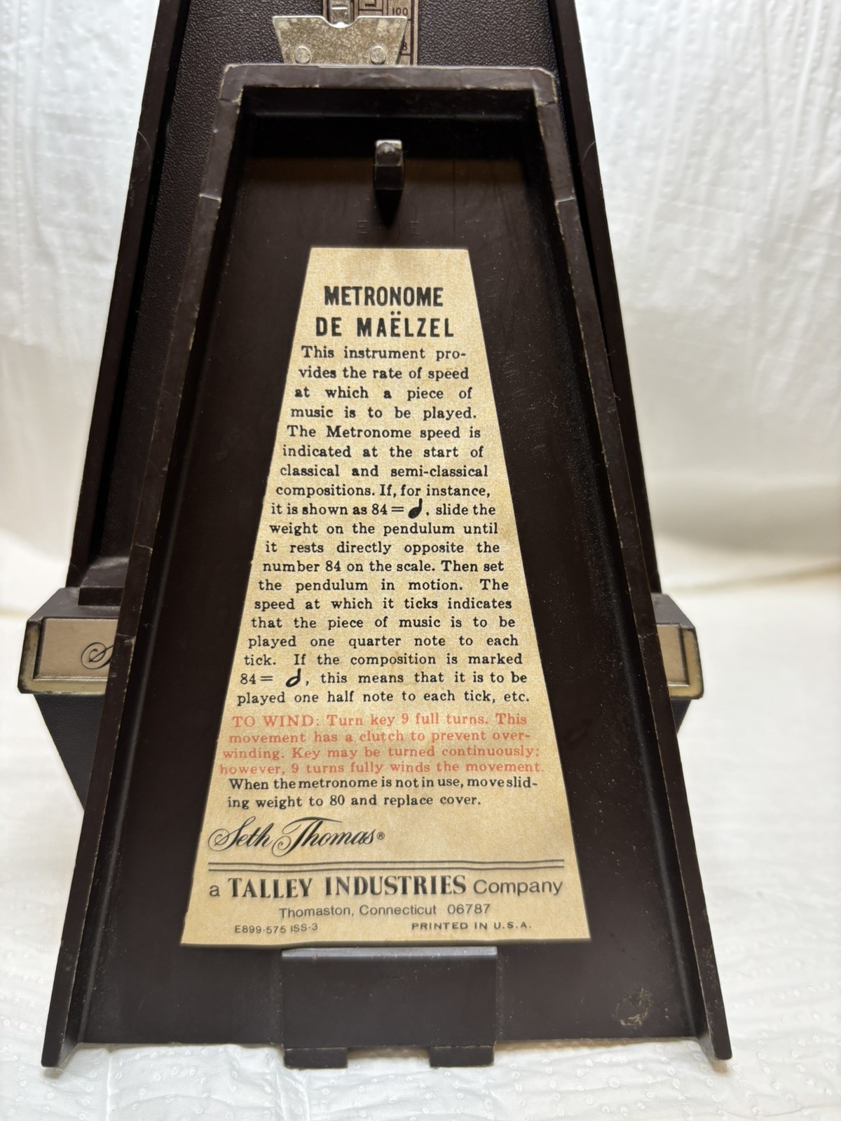 Vtg Seth Thomas De Maelzel Metronome Music Timing Instrument Wind Up Piano Band