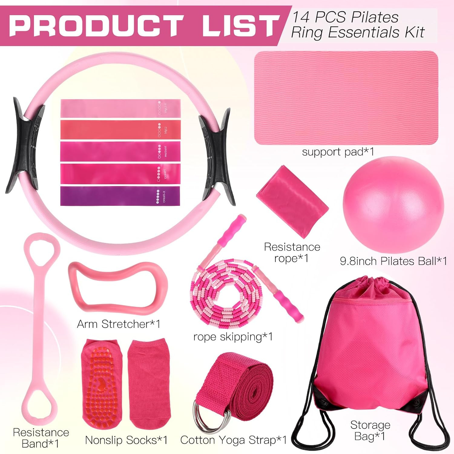 15 Pcs Home Pilates Essentials Kit for Women,Pilates Kit with 9 Inch Yoga Ball,P