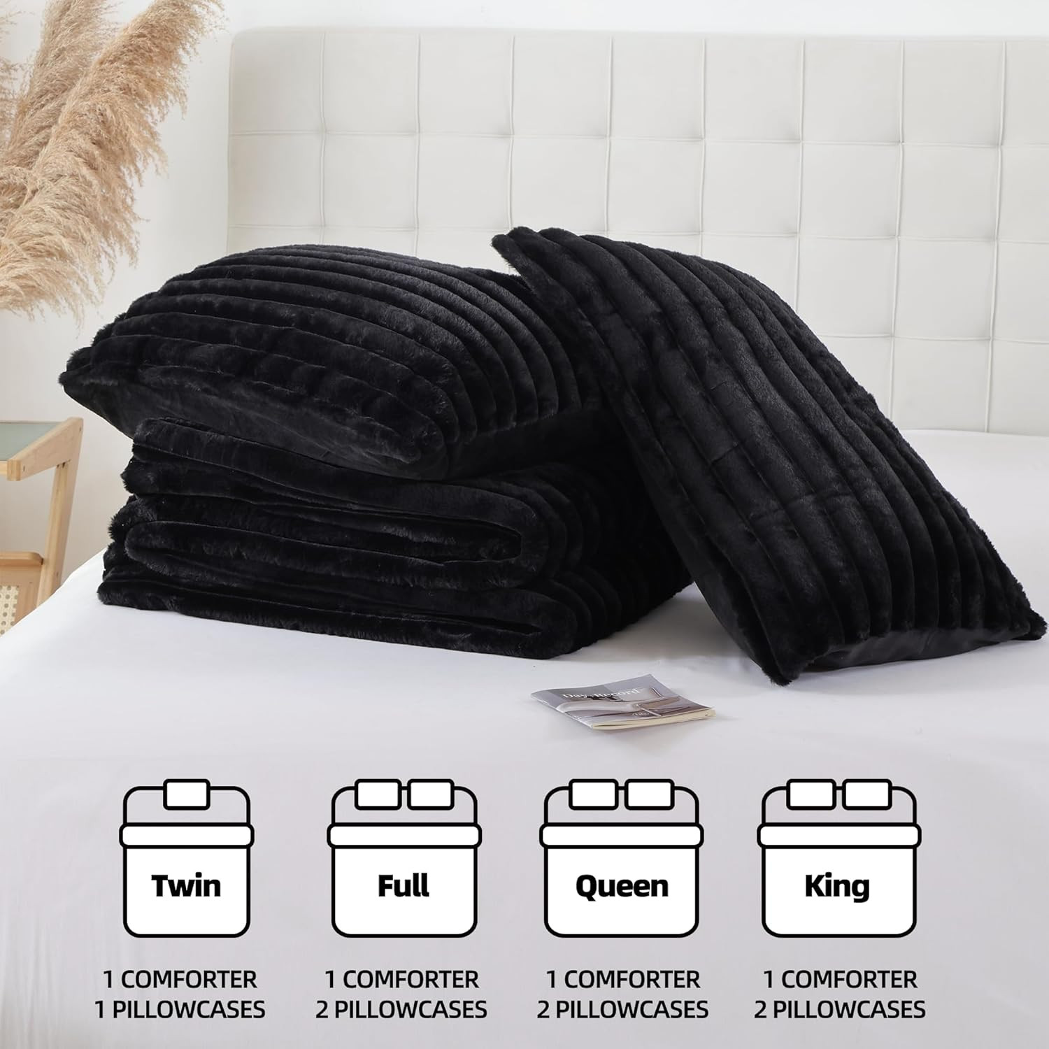 как выглядит Fluffy Queen Comforter Set 3 Pieces - Black Fleece Fluffy Comforter Set, Luxury фото
