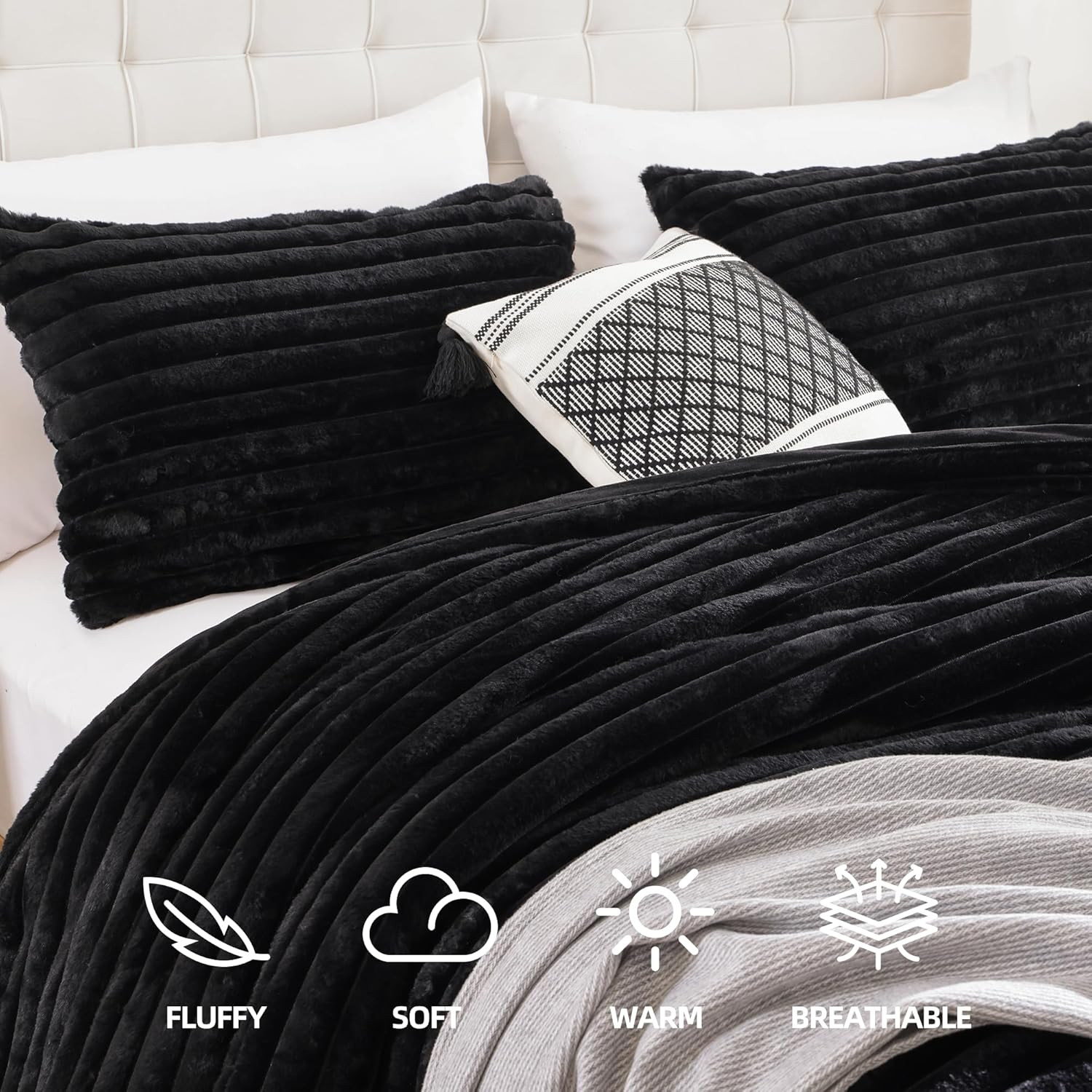 Fluffy Queen Comforter Set 3 Pieces - Black Fleece Fluffy Comforter Set, Luxury