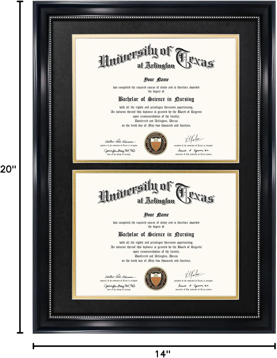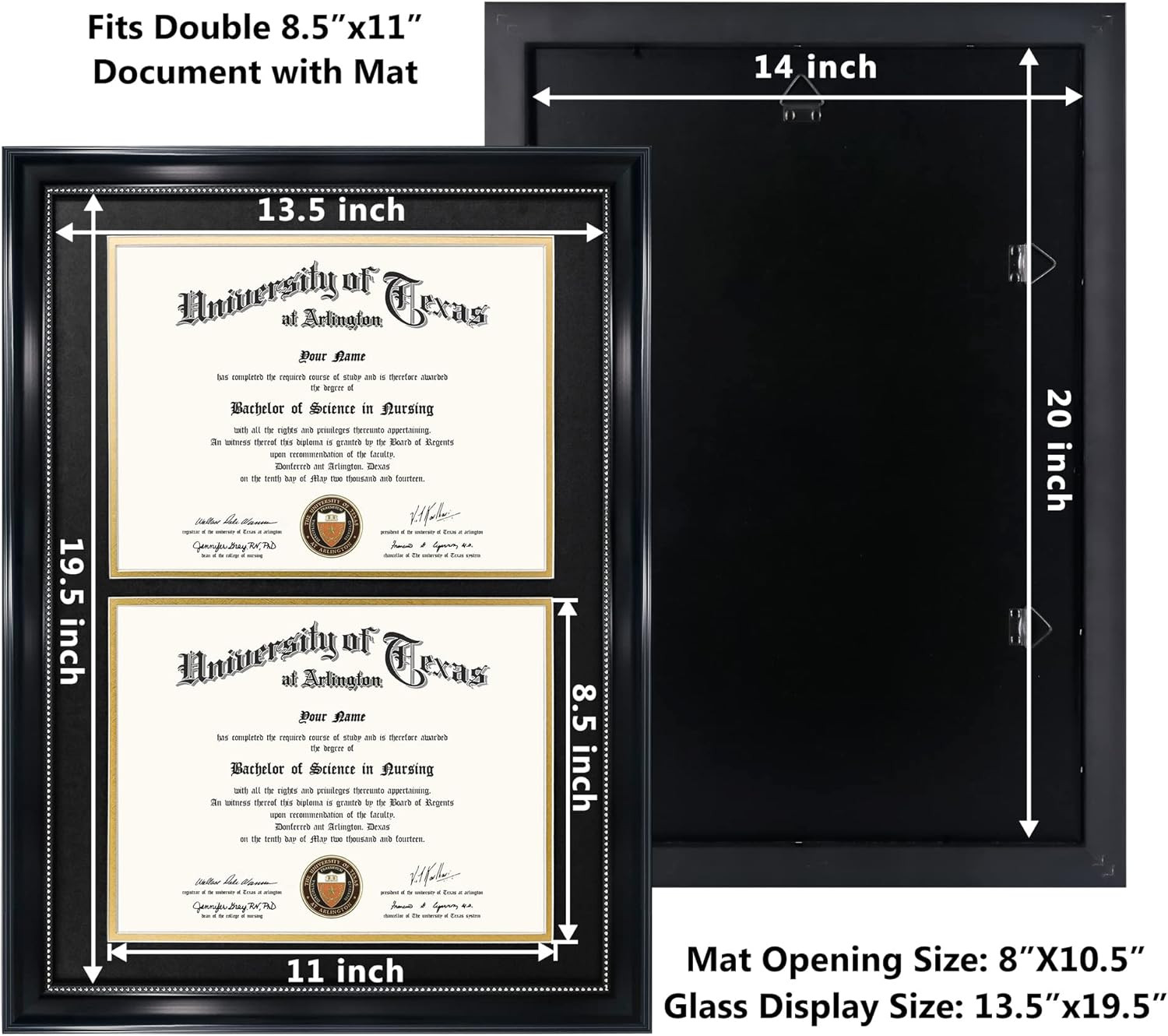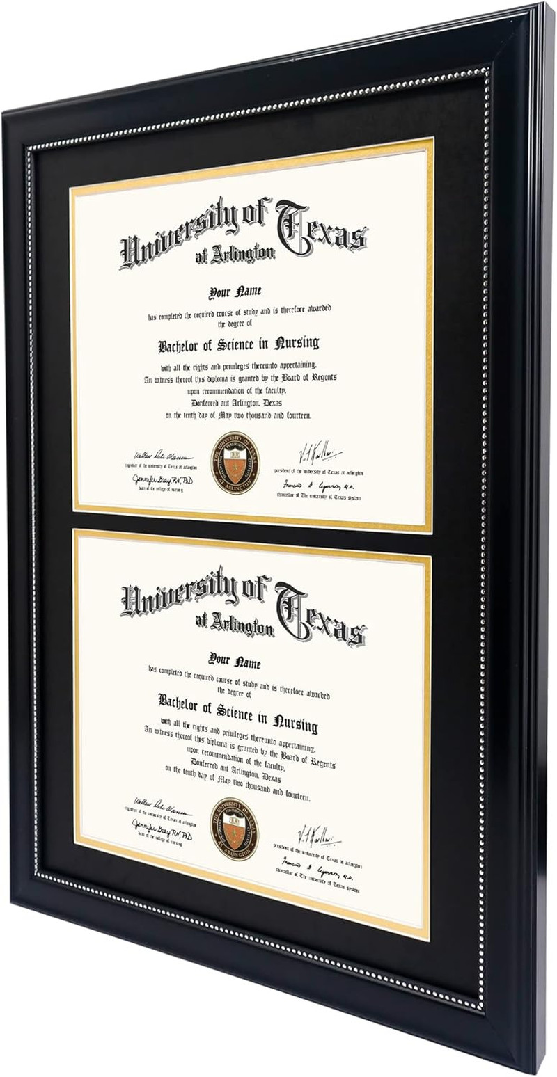 14X20 Double Diploma Frame, Display 8.5X11 Certificate with Black over Gold Mat,