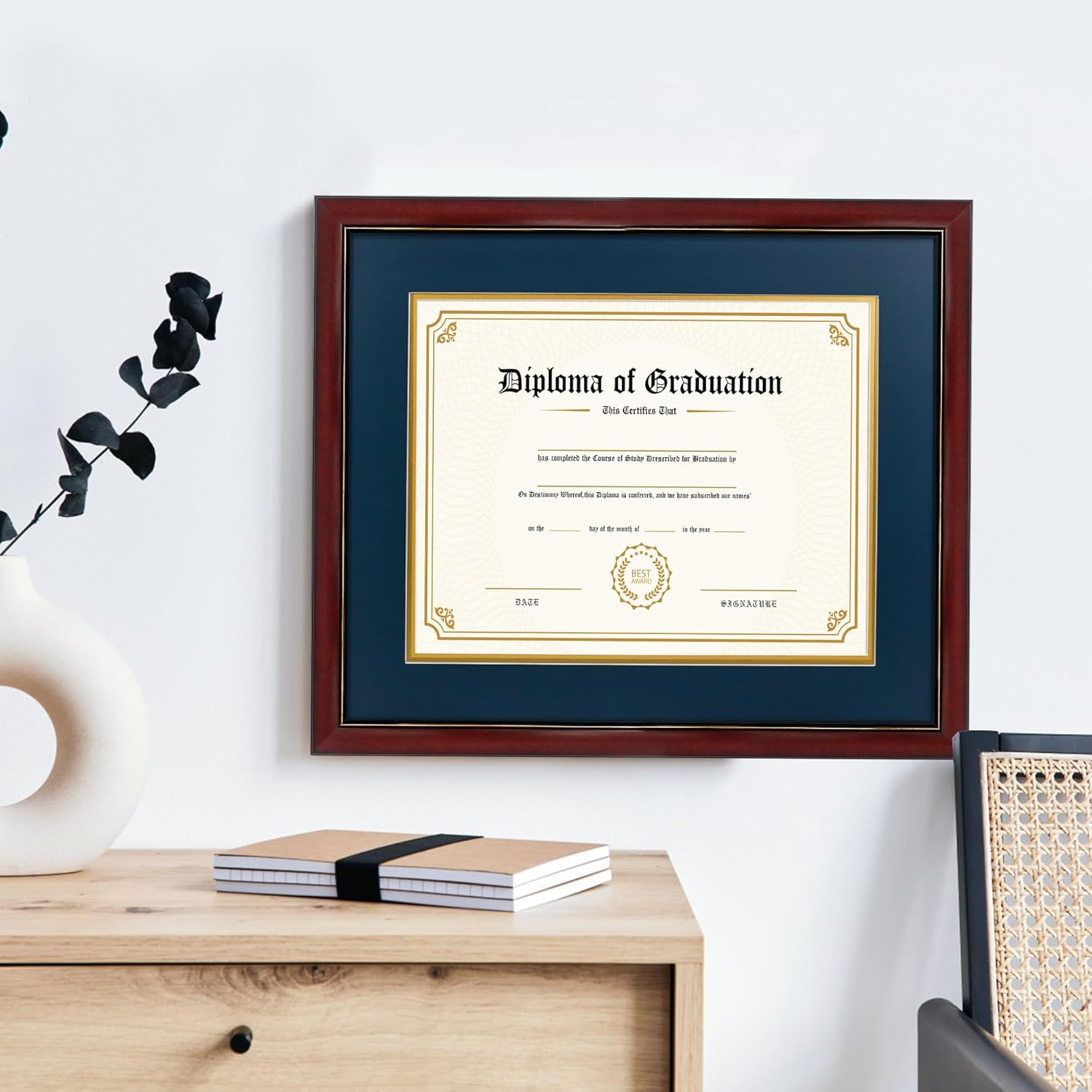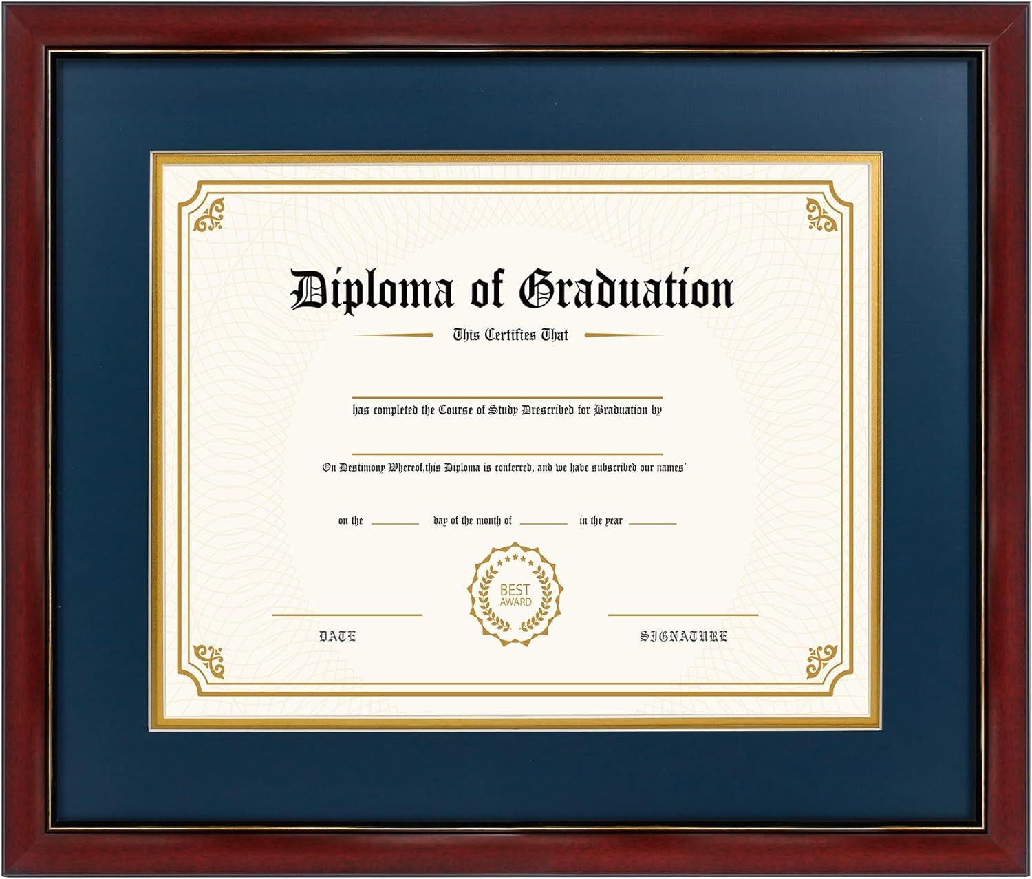 11X14 Diploma Frame with Navy over Gold Mat or Display 15X18 Certificate without
