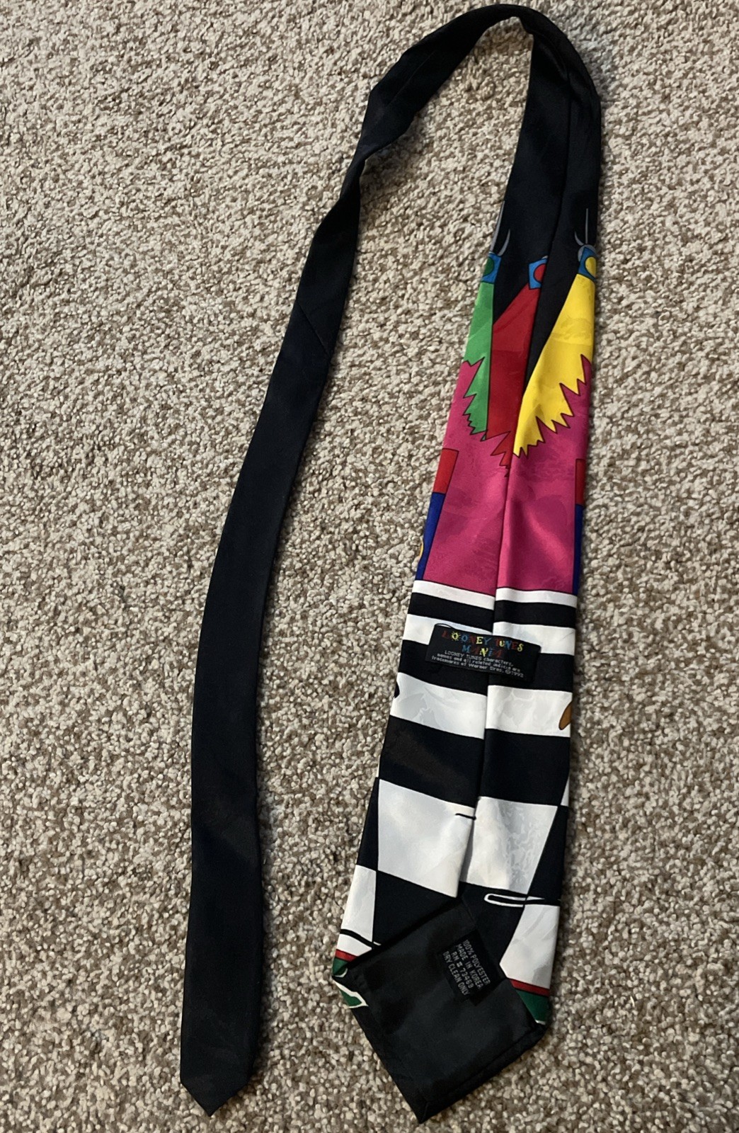 1993 Looney Tunes Mania Silk Tie Rappin Tunes Bugs Bunny Taz Vintage