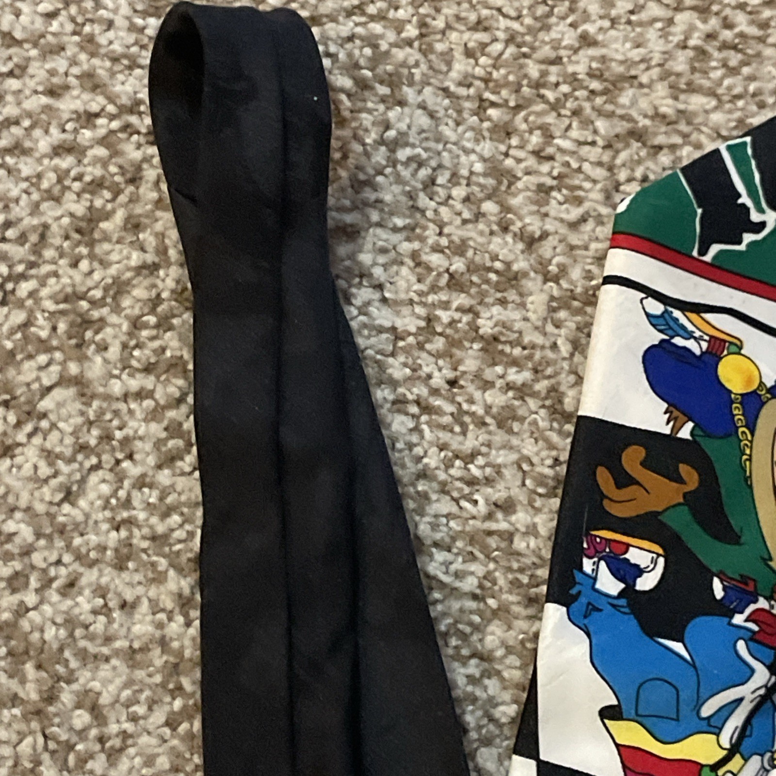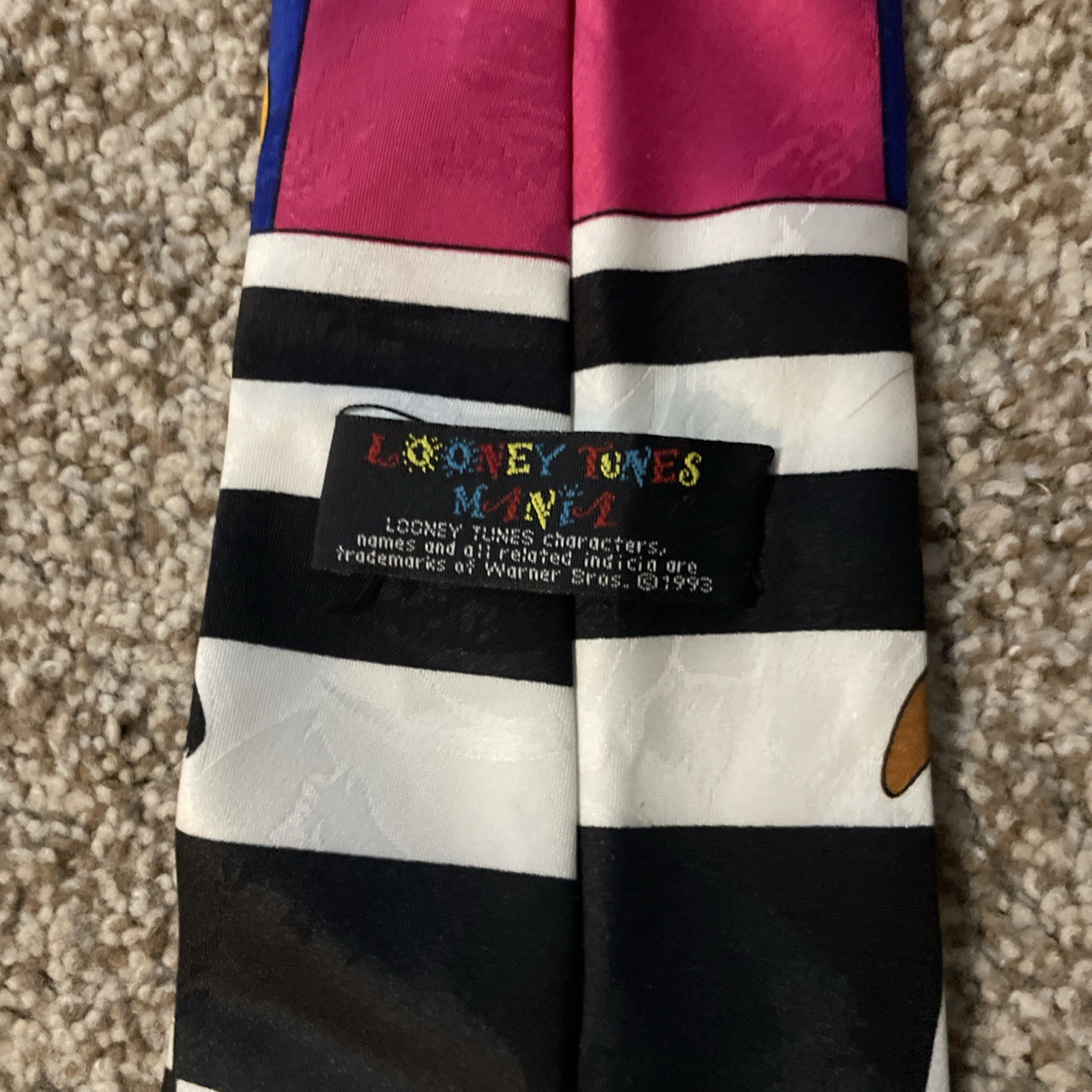 как выглядит 1993 Looney Tunes Mania Silk Tie Rappin Tunes Bugs Bunny Taz Vintage фото