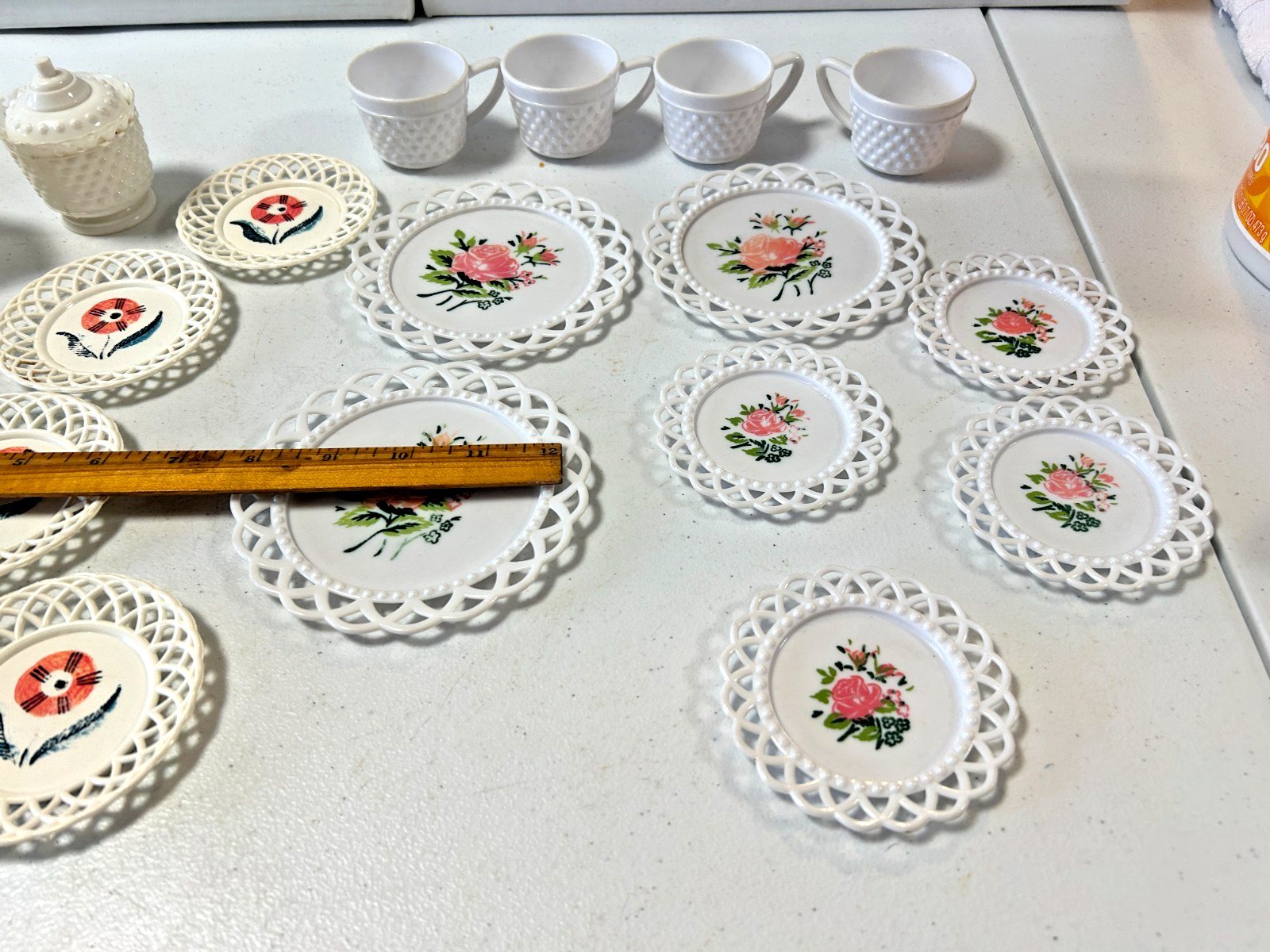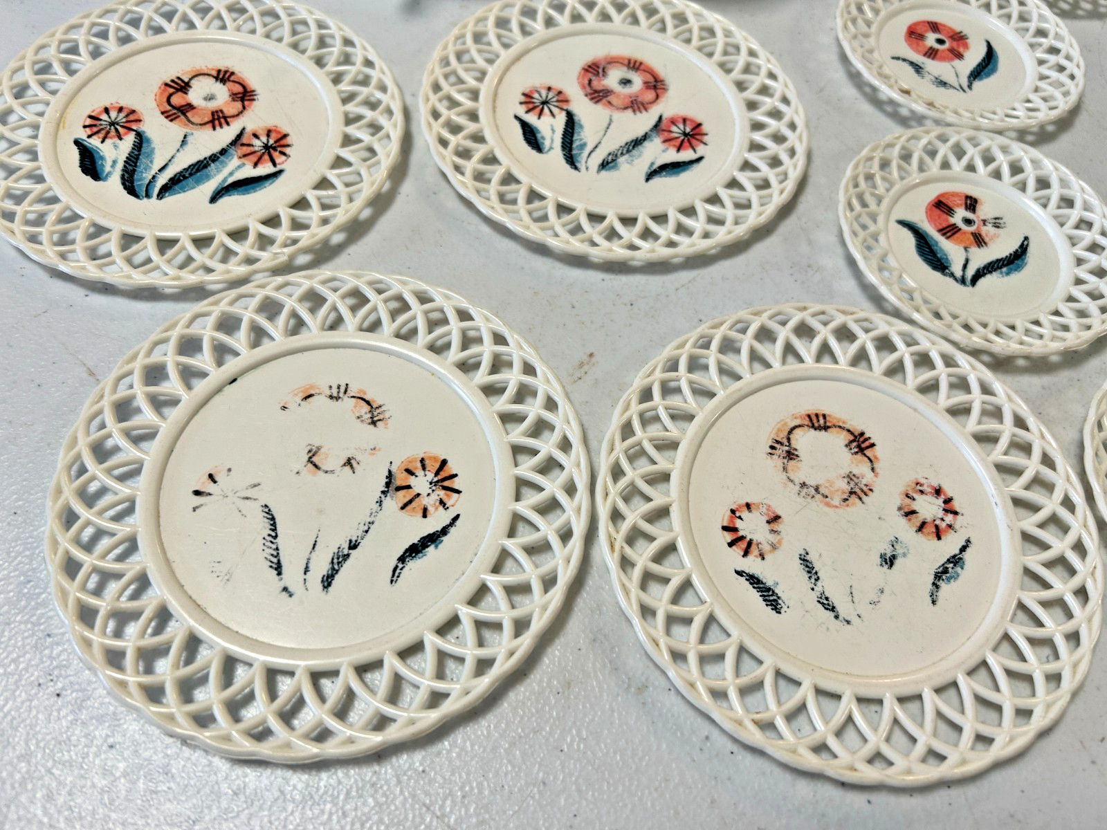 Vintage Children's Plastic Fancy Plates and Cups with Flower Design