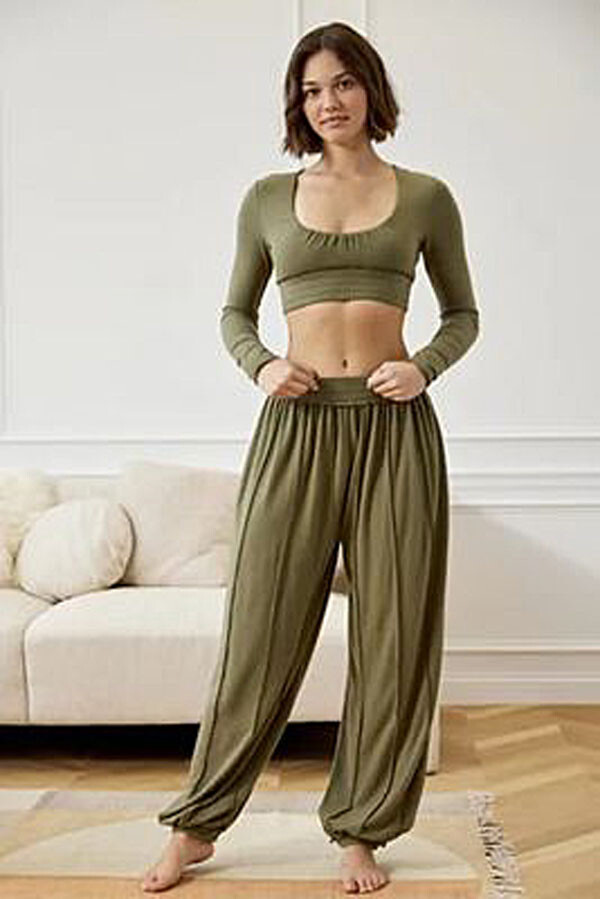 как выглядит NEW Out From Under Griffin Seamed Jogger Lounge High Waist Pant Olive Green фото