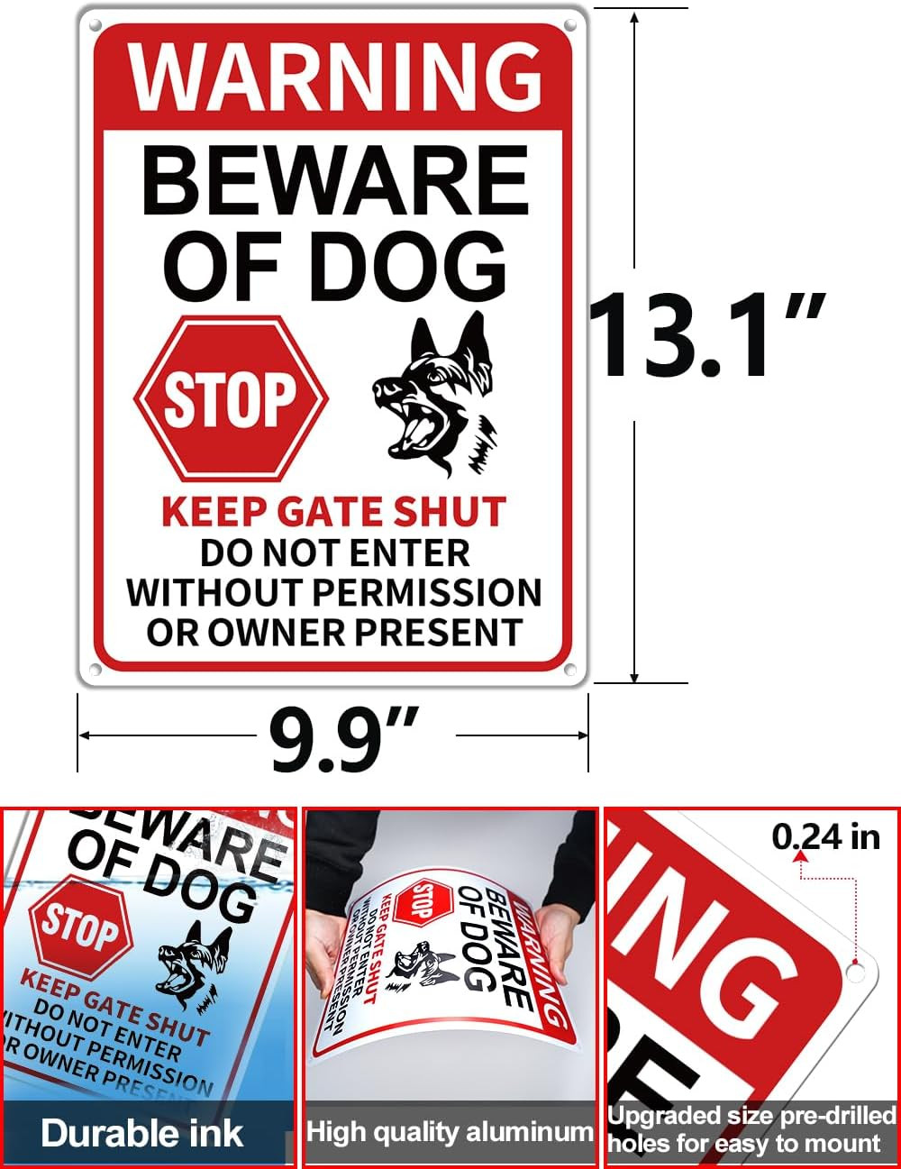2 Pack Beware of Dog Signs, 13X9.9 Inch Reflective Tin Sign Beware of Dog for Fe