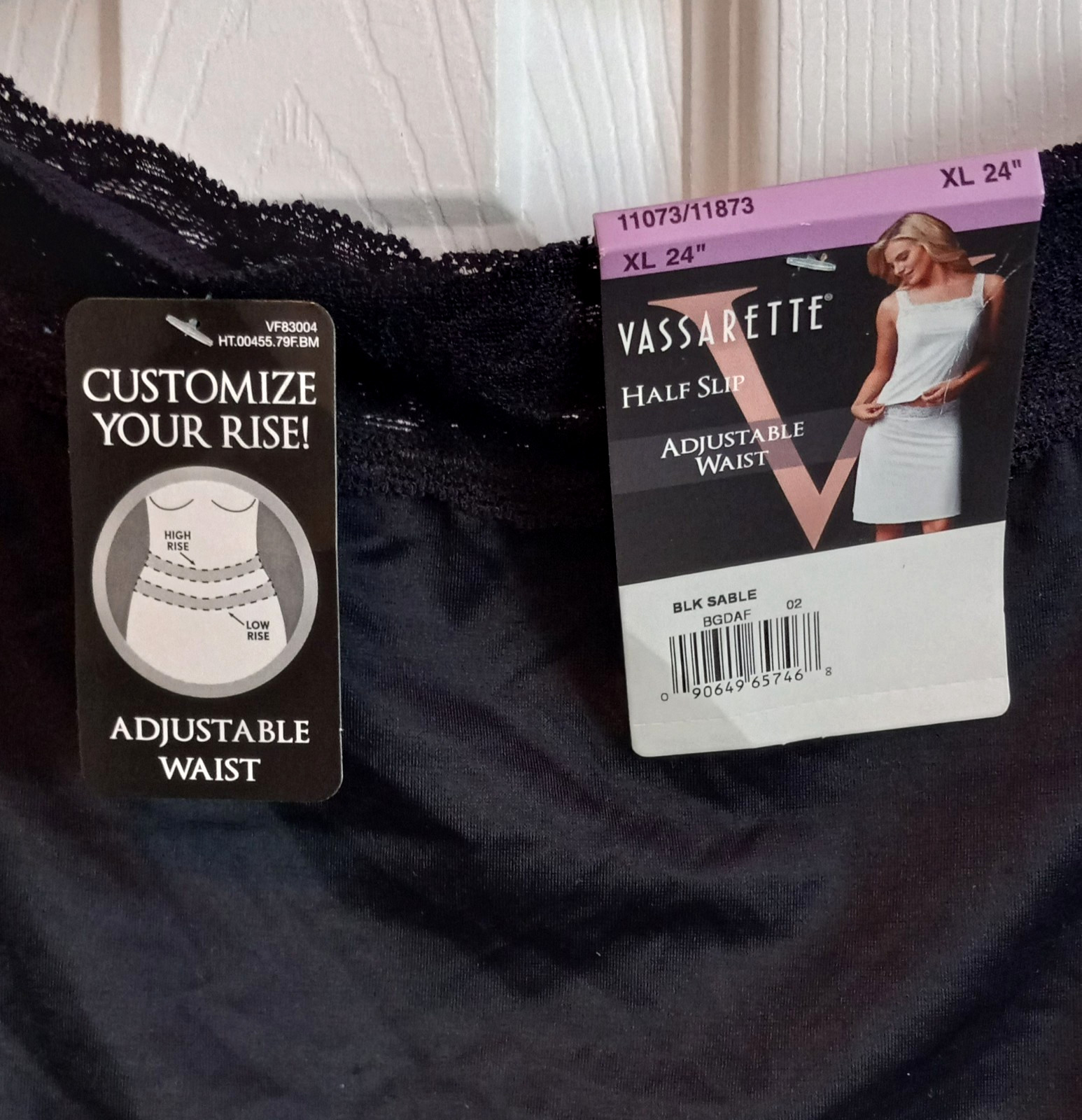 Vassarette Nylon Half Slip Womens Sz XL 24 Adjustable Black Lace Waistband NEW