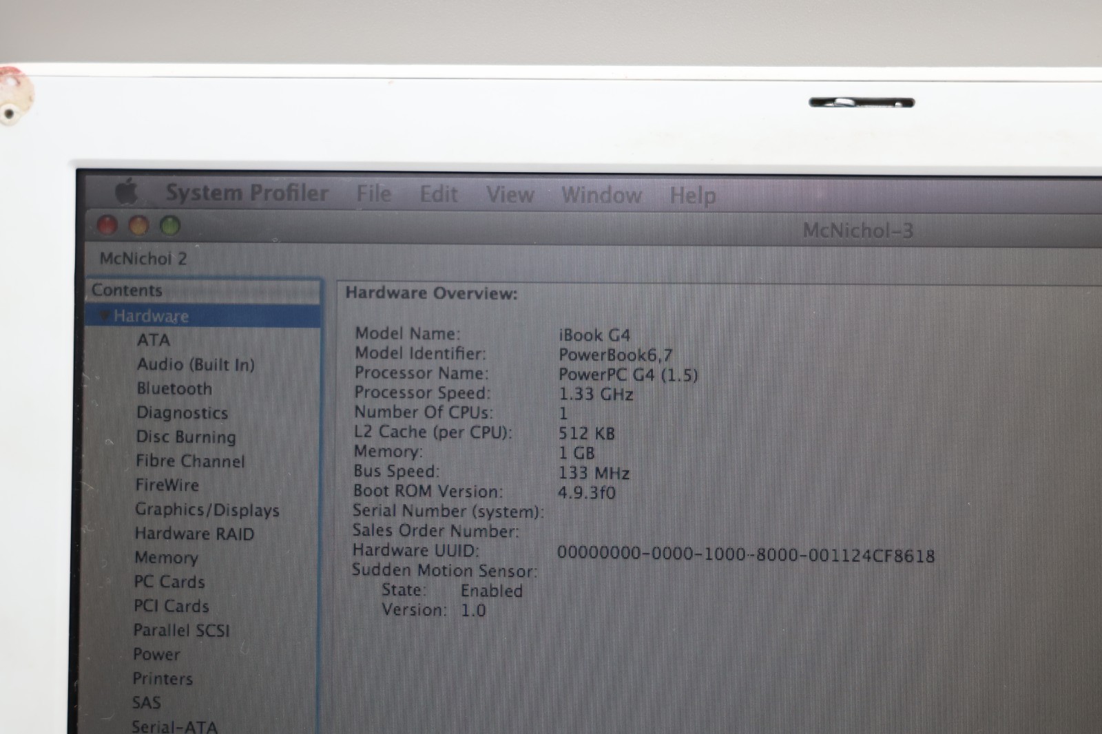 Apple iBook G4 - A1133-OS X- 10.5.8-1 GB- TESTED- PLEASE READ- Dut's Deals