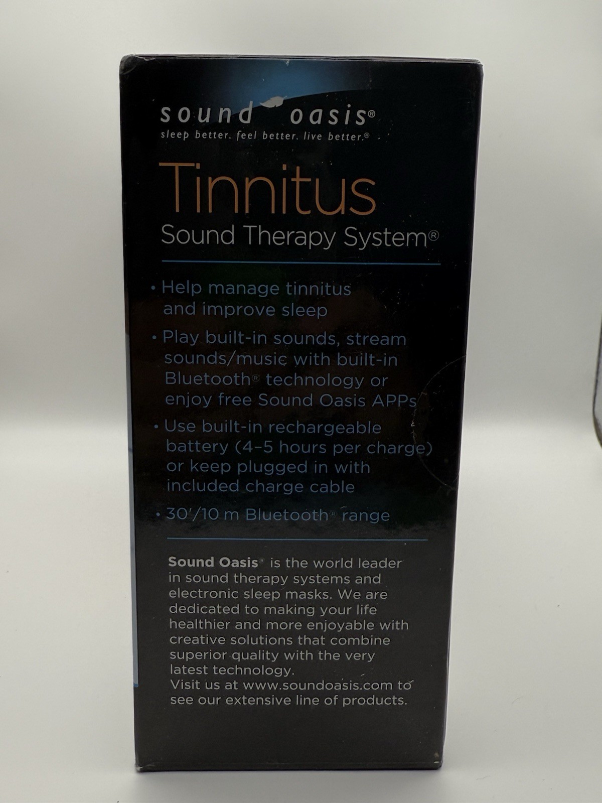 Tinnitus Sound Therapy System w Bluetooth App Sound Oasis Sleep Aid Device Calm